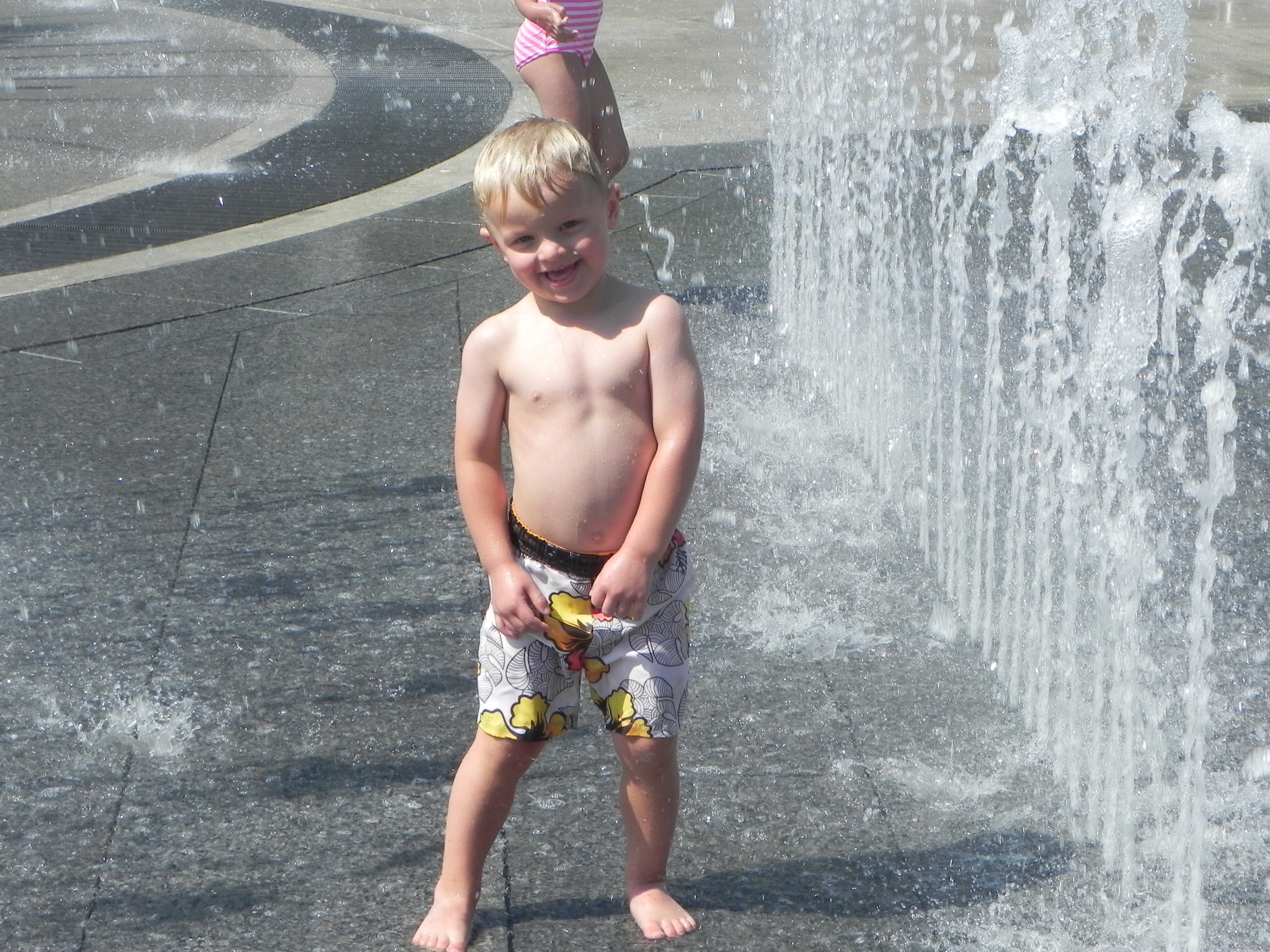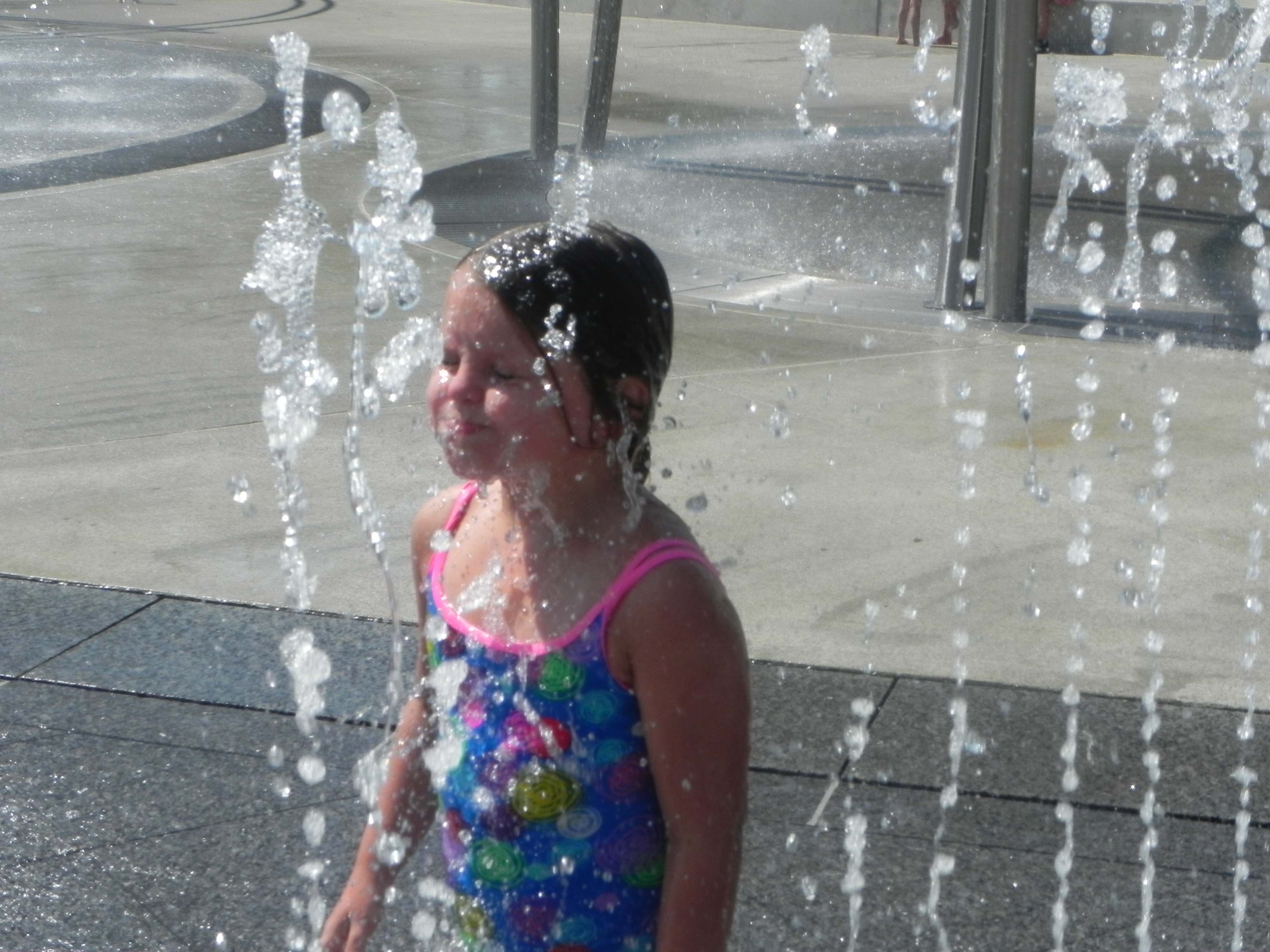 Mario and Maria dancing around in the fountains at the Scioto Mile