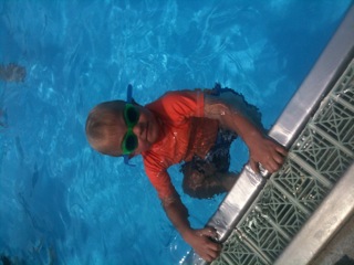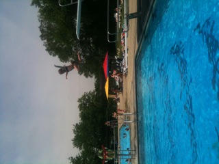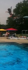 Maria climbing up the ladder to the high dive, walking confidently to the edge, looking down at me and the water, smiling and jumping in with feet planted firmly down to hit the water first (avoiding that belly flop she initially landed)