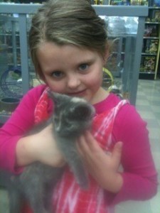 Before too long, Maria and Mario had it with them in the bedroom under the bed.  They named him “Buster.” They tried to teach him how to go to the bathroom in the litter box.  They groomed him.  They kissed him.  They showed him the water bowl.  Maria held him in her arms while she sat on the couch and all I could see the entire time was me as a young girl with my cat (numerous cats throughout my childhood but only one at a time).  It is that image that drives me to want a cat for Maria.  I remember how much I loved my cats, and how much they loved me and laid with me all the time.   But Jon is allergic to them and when he finally could breathe after our previous two cats passed away, he swore no more cats.  Maria always asks “when dad dies, can we get a cat?”  (I don’t think she quite gets the severity of that question. Or maybe she does?!).