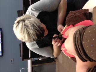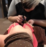 However, my girl loves pedicures. The lack of vanity in her hair translates down to her feet. Whenever she is line for a treat for doing something good, she always asks for a pedicure. And me giving her one does not cut it. She must go to the salon and be completely and utterly pampered. I think I forever damaged her when I took her to get one at age 4. We went with my mom and grandma in Cincinnati. After that experience, it was over for her. She was an addict. When we went for one this week, she finally experienced the pleasure of the leg massage. She’d always look at me like I was crazy when I sighed and moaned while getting the massage part of the pedicure but this time around, it was Maria doing the moaning. Her beautician had the touch and melted Maria with her touch. It was hilarious.