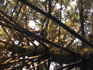Maria wanted to ride her bike tonight.  I was so tired and had not eaten dinner yet but I agreed to a bike ride because (1) it’s good exercise for her and (2) it gives us some time together after a long day at school and work.  Mario ended up meeting us at the park (Jon dropped him off because he was so upset that Maria and I had left without him).  The two of them bee-lined straight for the spruce tree with the awesome climbing branches.  Maria climbed up to nearly the top of the tree like a little monkey and Mario stared in amazement.  He got up the guts to climb up a few branches.