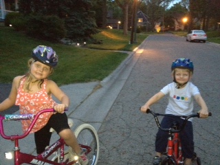 I am so proud of that girl. And she loves to bike up the street alone with me far behind her. She does a great job looking down both sides of the street when she crosses at intersections and she doesn’t have to deal with any crosswalks with lights for a mile (and by that time I have caught up with her – albeit gasping for air).