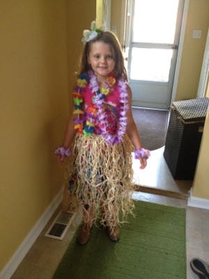 My girl is loving horse camp this week. She had Hawaiian day today, and dressed herself so cute. She used those dollar store purchases well between the leis, flower barrettes, and grass skirt.