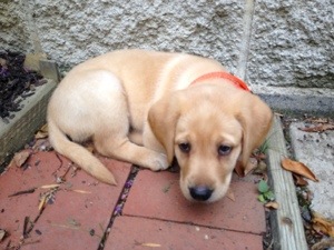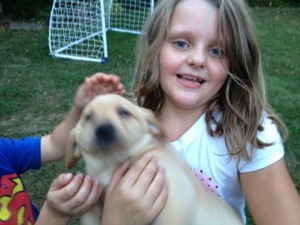 We got our new puppy Friday night! Jon decided on a breeder six hours away in Bad Axe, Michigan. We’ve spent the last month trying to determine whether we want a female or male. We opted for a male because we had good luck with Cy and the majority of the last twenty sights I viewed opined that male labs were better than females. Then we spent days trying to decide whether to get a light one or darker one. Pathetic. By the time Jon went to get him on Friday afternoon, I gladly turned the choice over to him.