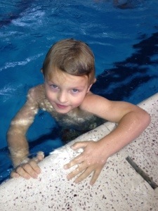 This last party that Mario attended was at a swim club and he had to change in a big tent with other boys. They were all giggling and turning around modestly. Except our Mario who just tore off his clothes and threw on his suit.