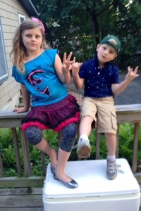 Jon told the kids that it would be 2014 outside the house but inside the house we were reverting back to the 1980’s. There would be no iPads and no cell phones. Our phone would be attached to a wall and you could only walk five feet away from it (Maria did think it would be cool to have a wall phone (Aunt Julie has one!) but she was not enamored with the thought of no iPad or Google. Mario was fascinated with the entire concept of going back to the 80’s (he clearly didn’t process the “no technology” idea). Jon described the outfits we wore in the 80’s: girls wore neon and fishnet and their hair in a ponytail on the side of their heads. Boys were penny loafers and their collars up and white pants and suspenders. Mario asked what suspenders were and Maria responded “they are like belts that clip on your pants and go over your shoulders.” Love it. Jon showed them images of clothes from the 80’s and Ri was appalled. She made it clear she did not want to go back time. Jon kept ribbing her and she finally blurted out “you wanna see 80’s? Mario and I will show you 80’s!” They went in the house for ten minutes and these two 80’s babes walked out.