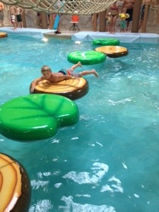 We woke up Thursday morning and engaged in one last romp at the water park. We went down the family raft ride and laughed hysterically as we slid up the side walls and got drenched. We played in the wave pool and watched Ri dive like a mermaid and Mario fight the incoming waves. We rooted them on as they crossed the lily pads.