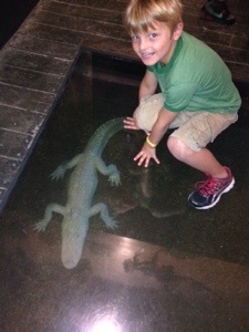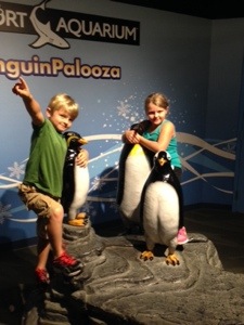 After Perkins, we headed south to the Newport Aquarium. It was not as big as I expected or have as many things to do as we hoped. We thought it would be a full day trip with the amount it cost to get into the place. But it still brought joy. The kids got to touch a shark and watch penguins dance around and witness me squeal in delight over baby frogs.