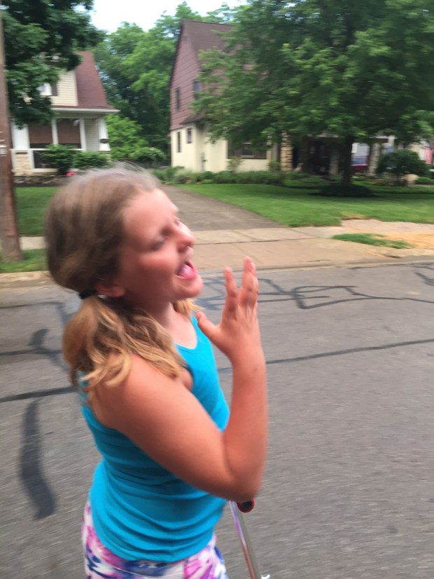 Ri is a fun kid – rarely in a foul mood – and she loves to have a good time. Even a ride to Target ends up amusing with her. She throws herself into the world – not caring if people look at her funny or think she’s weird. One of her mottos could be: “This is me – take it or leave it.” I’ve commented on numerous occasions that she may want to re-think wearing pj’s and roller skates to the coffee shop. Her response: “you tell me not to care what people think, so I don’t. Let’s go!” She would rather spend a day with her cousin Elena than go to a friend’s party. She is loyal to family, and chooses time with them over anything else. She’s non- judgmental and gets along with most everyone no matter if they are a star athlete or grunge. The other day I rolled my eyes at a lady wearing spiked heel and a crop top in the library. Maria counseled me: “you don’t know where she’s from or what she’s like so don’t judge her, mom.”
