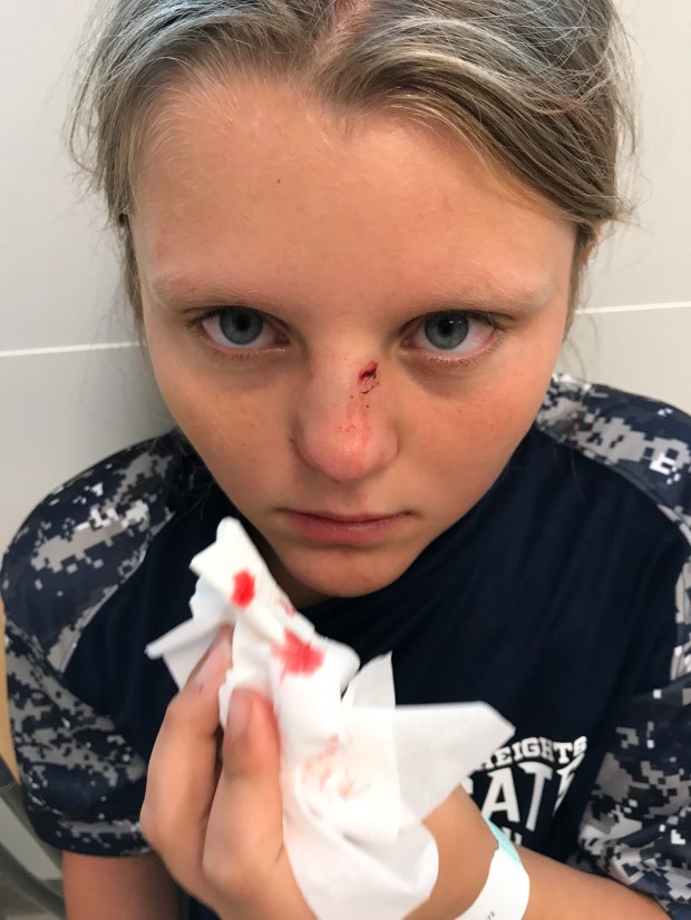 The next morning, Ri woke up in a great mood. Surprisingly, and who’s had not swelled up beyond belief. It was definitely better but not as big as Jon and I thought it would be. She begged to play in her soccer game that evening but Jon and I nixed it. She was mad at first but then reasoned “if I can’t play 100%, then I really don’t want to play anyway.” She sent me s text during the day informing me that her nose “didn’t look that bad.” She partied it up with her teammates on the bus ride to the soccer game and wanted to stay to watch the boys play after her game. She likes to ride the bus home with her teammates and the boys soccer team because they sing and act silly. She could’ve cared less that she had a big old broken nose going on.