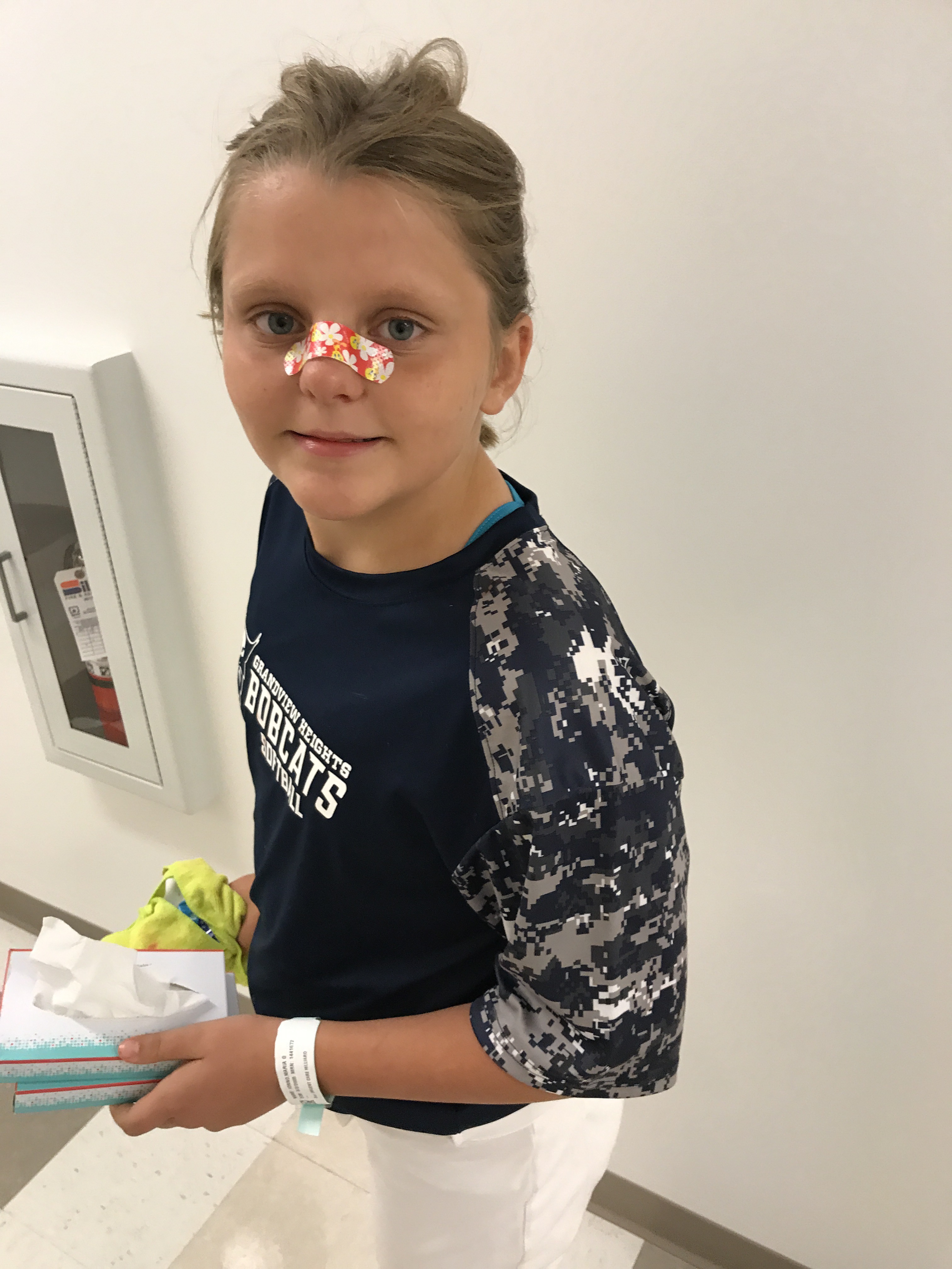 The next morning, Ri woke up in a great mood. Surprisingly, and who’s had not swelled up beyond belief. It was definitely better but not as big as Jon and I thought it would be. She begged to play in her soccer game that evening but Jon and I nixed it. She was mad at first but then reasoned “if I can’t play 100%, then I really don’t want to play anyway.” She sent me s text during the day informing me that her nose “didn’t look that bad.” She partied it up with her teammates on the bus ride to the soccer game and wanted to stay to watch the boys play after her game. She likes to ride the bus home with her teammates and the boys soccer team because they sing and act silly. She could’ve cared less that she had a big old broken nose going on.