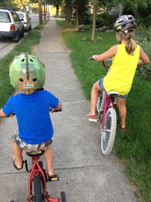 On the way home, we passed a couple jogging. Mario pointed at them and said “they are helping the environment by using their legs and not driving, right mom?” I shook my head yes. Maria was dazing off into space and I didn’t think she heard us until she declared “why run when you can bike? I’m going to bike everywhere because I hate to walk.”