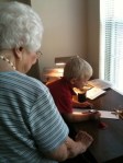 Mario writing with Grandma M.