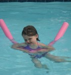 When we arrived on Thursday night, we headed straight for mom’s pool.  Mom brought some cheese its and apple juice boxes in order to avoid the wrath of Mario (last time Grandma Lolo came to visit Mario asked “did you bring cheese its and juice boxes?” Mom answered no, and he looked very distraught “But, but why?”).  Maria loves the “neighborhood” pool so much more than the big Blue Ash community pool.  She likes to keep it tight and close rather than deal with everyone and their mother.  She swam and jumped around.  Mario sat on the first step of the pool and dipped his head in every five minutes or so.  He played with his noodle (blowing in one end and seeing the water squirt out the other end).  He ate his cheese-its.