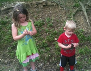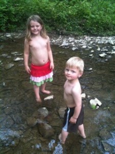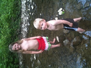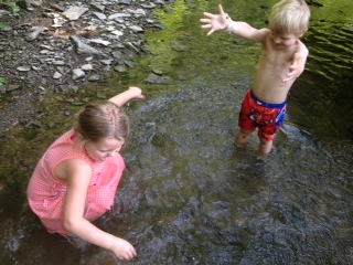 After a few minutes, the kids decided that they wanted to head back down to the creek.  The thought of dipping their toes in the water was too enticing.