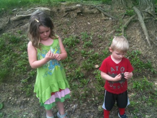 The kids tried to find frogs for me in the stream but had no luck.  They did get plenty wet though.  Maria likes to go off on her own and “think” as she puts it.  I keep a distant eye on her but she does enjoy her space.  Mario feels like he has to do the same so he announces that he is going off, too, but inevitably within two minutes he is calling for me to show me something.  I like how they feel comfortable enough to go out on their own (just as long as they tell me first!).