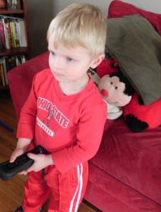 So, I treated them to McDonald’s Playland.  The Washington CH Playland just got renovated and it is actually quite nice.  Mario, again, made friends immediately with two other boys who were brothers.  Maria decided to stay by her mom because her side hurt from her fall.  After letting Mario play for a half hour we took off for Columbus.  Maria begged me from the back seat to let her give Mario the horn I bought him.  I bought it for him a week ago and told him if was good all week, he would get it.  Maria convinced me he had been good since he did not scream in the middle of the wedding, and he said “thank you” when Grandma Lolo gave him food.  Pretty high standards, heh?!