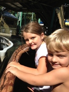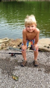 After paddle boats and the Aqua Cycle, Ri and I joined Mario on the bank. Within ten minutes, he had a fish. Luckily, a teenage boy helped us unhook him. Mario wanted to throw it back in the water but got scared so Ri took control. Thank god for big sisters.