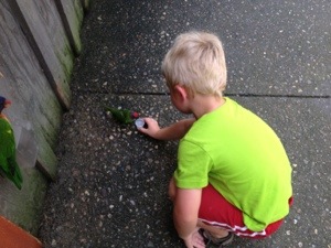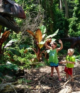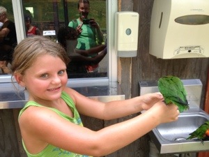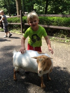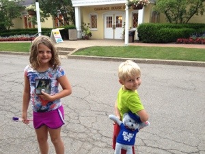 On Thursday, we took the trolley to the Oglebay Zoo. Yes, it has a zoo…. with zebras. It was a tiny area with about ten different animals scattered around. It also had dinosaurs that would roar at you as you passed. The kids are finally at an age where they understand they aren’t real but they still had fun with them (thanks to me pretending to be scared too death). The lorikeets were the biggest hit since they drank nectar from cups M&M were holding.