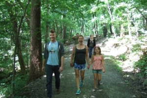 As soon as we pulled into Oglebay, we spotted deer grazing on the hills. The kids went nuts pointing them out. The land sloped up and down and was peppered with pines and oaks and deer and a random groundhog. It was quite serene and poetic. Jon and I glanced at each other and raised our eyes silently saying “hmmm, maybe it won’t be so bad.”