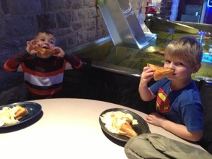 I took the boys to Stauf’s and all they wanted to do was play fight. I tried to get them to eat a bagel but after a bite they would go back to chasing each other. Now, I could have put on my disciplinarian hat and forced the boys to sit and eat…ha. That’ll be the day. I don’t have it in me. So I tried to interest them with questions.