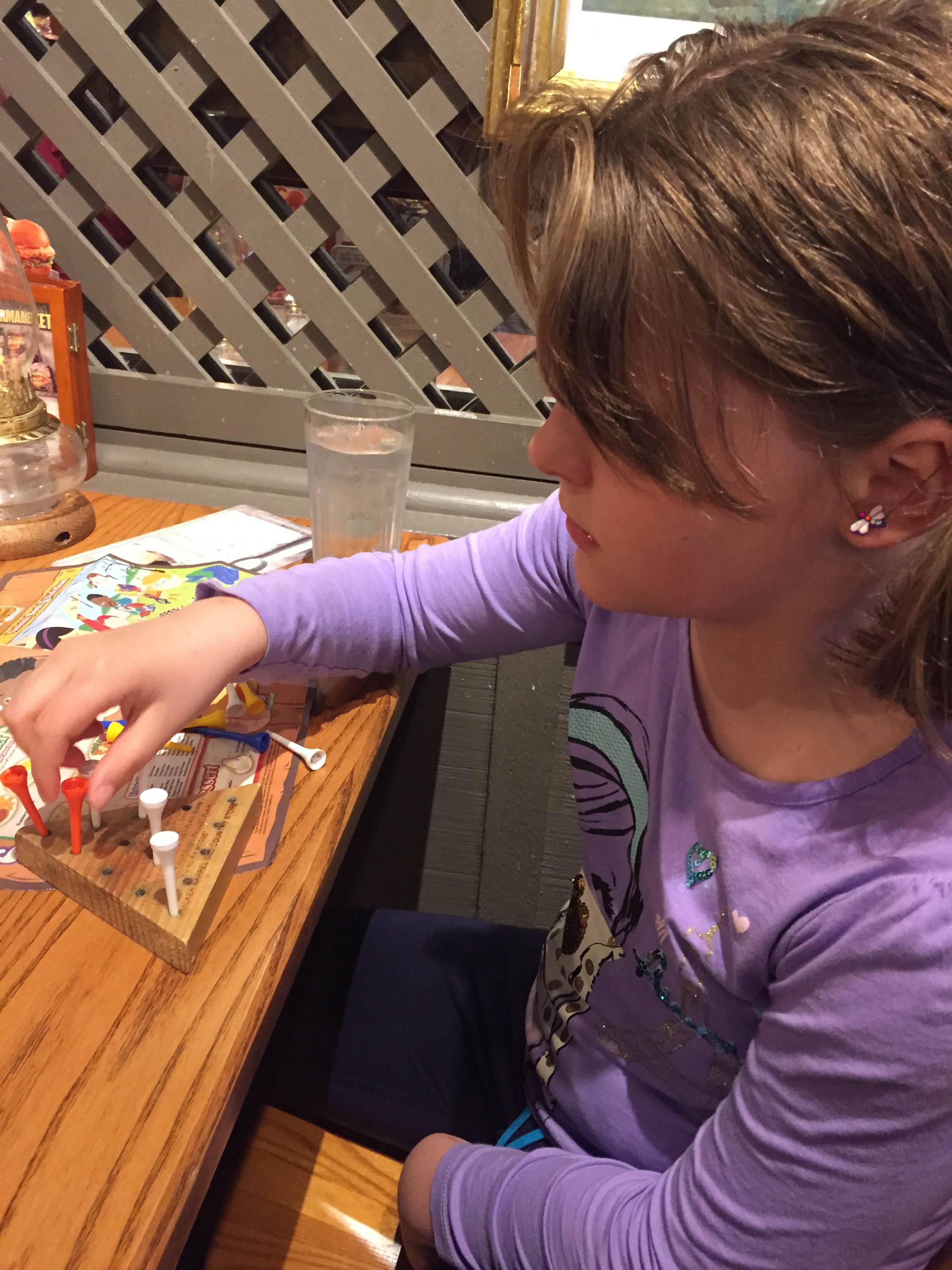 We decided on Cracker Barrel to eat dinner. Mario wanted McDonald’s. But he liked the peg game at Cracker Barrel, and the grilled cheese sandwich, so he stopped complaining.