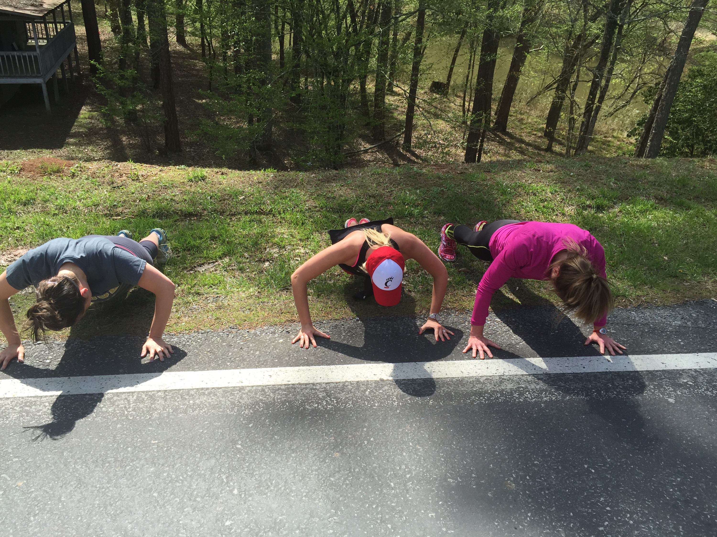Cy, Olivia and Lia joined me on a second hike through the woods. Cy is our nutritionist giving us tips on the heartiest foods. Lia got me up to speed on the newest restaurants in Columbus and the beauty of Match.com. And I got them to give me 20 push ups half way through our hike!