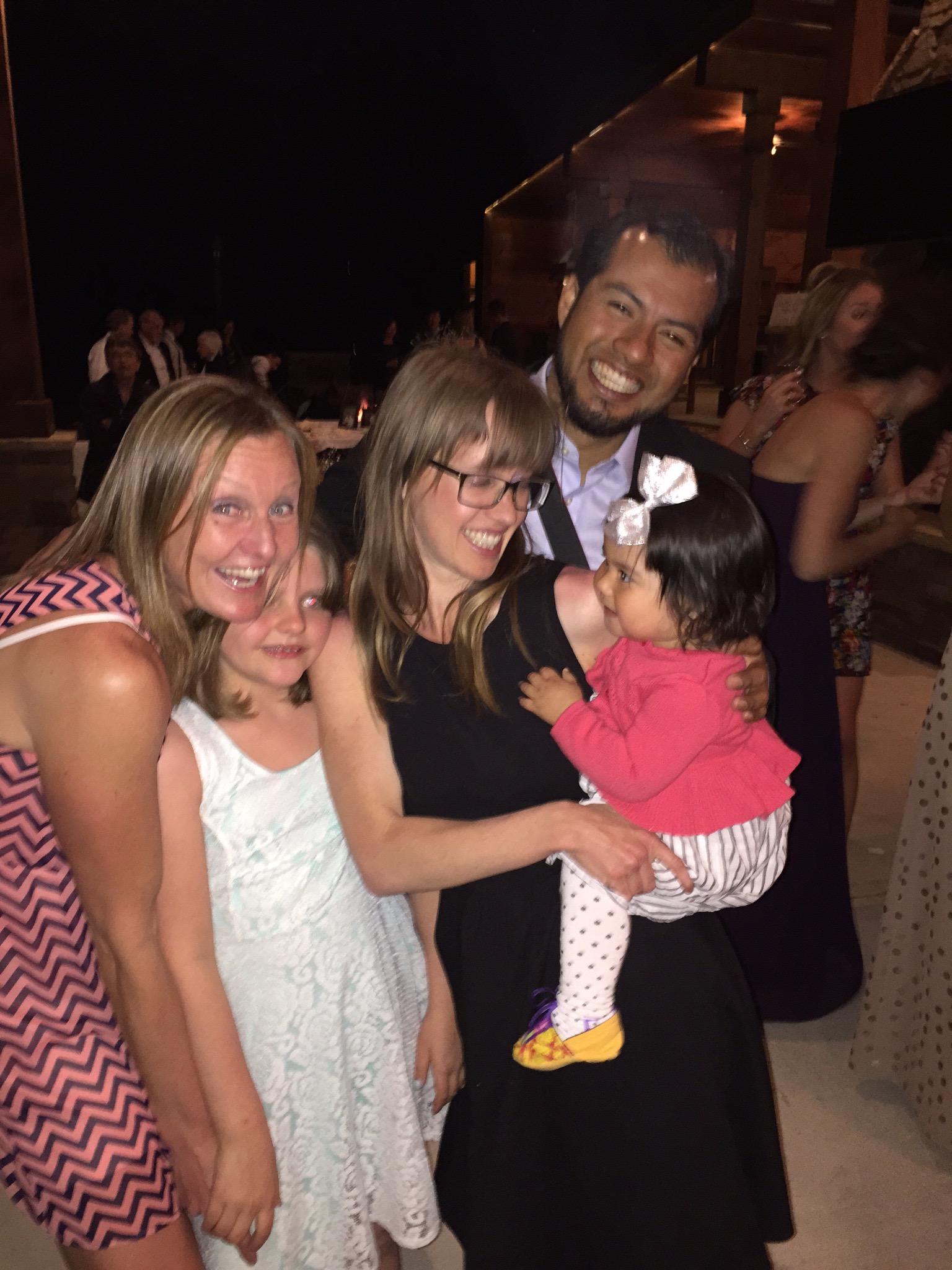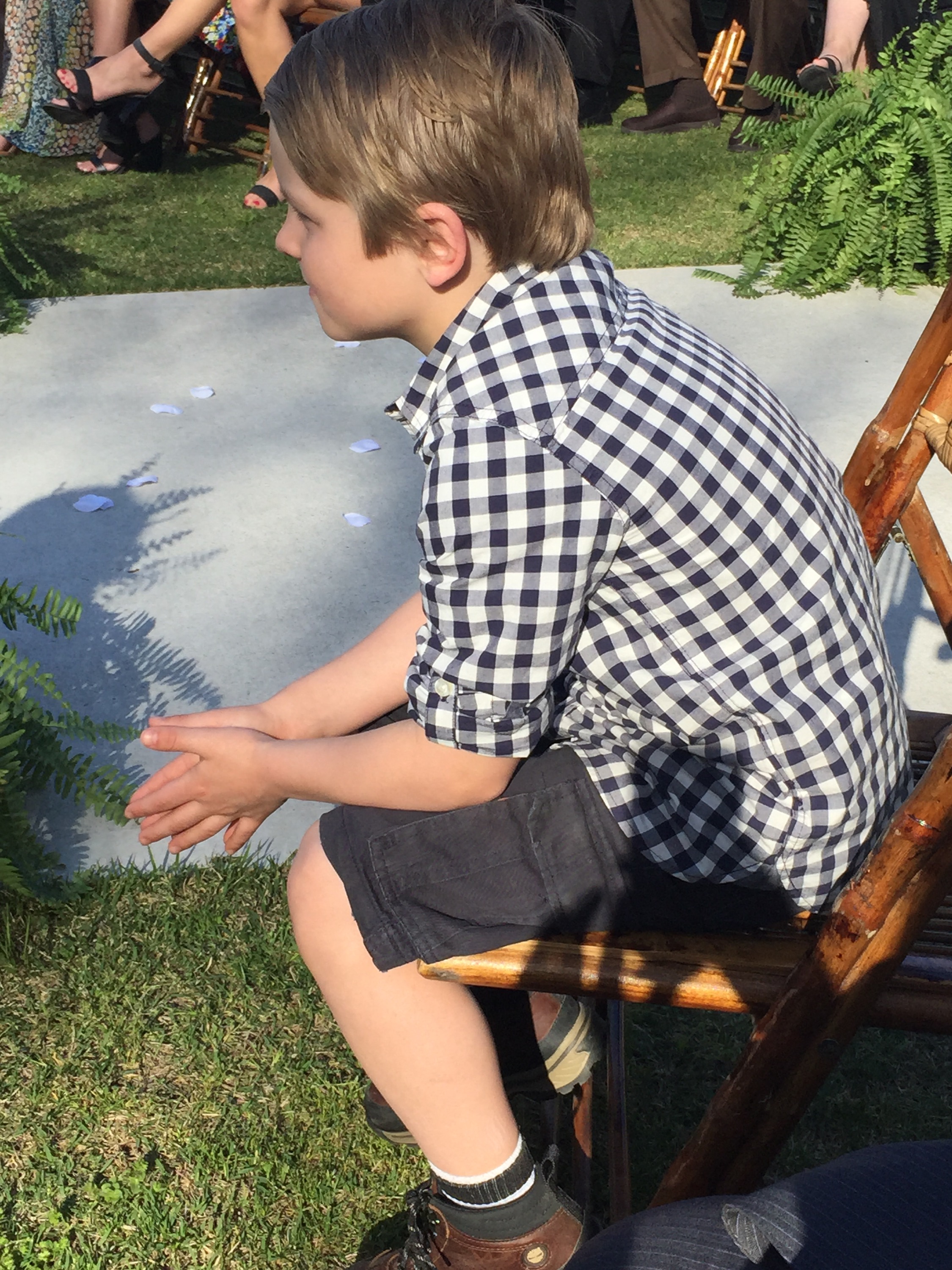 By the time we all got out and laughed at all our falls and scrapes, it was time to get ready for the big wedding. Aunt Ann curled Ri’s hair and Jon did Mario’s (too precious watching Jon brush and gel Mario’s bangs!). Jon happily drove his hunting partner Steve and Ri and I drove in the shuttle buses. Ri sat with Aunt Ann and took selfies while Amanda and Lia and I tried to keep Elena entertained.