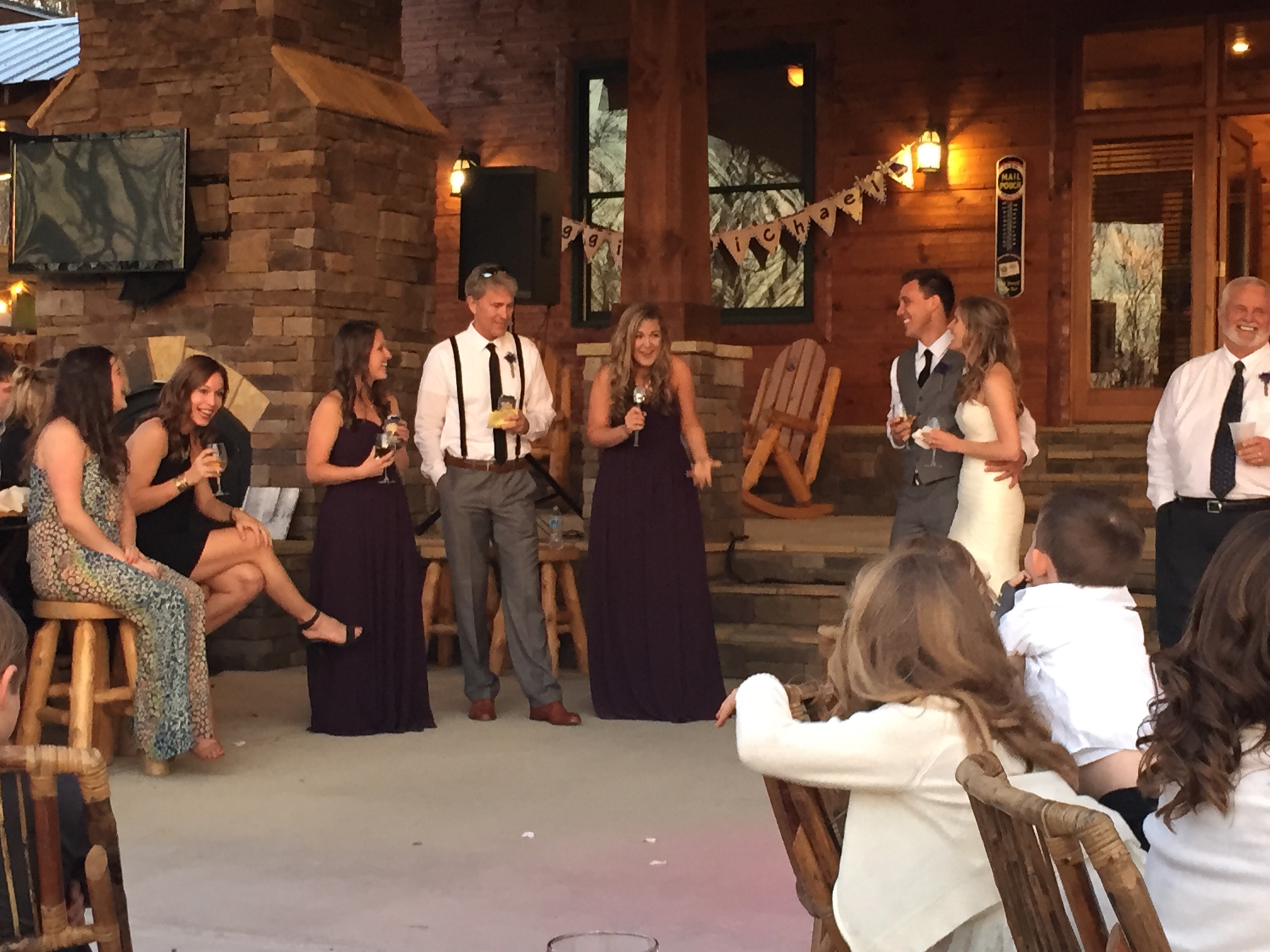 We arrived again at the lodge a little shaken from the twists and turns but ready to party Heile-style! Ri was excited to see Maggie walk down the aisle and Mario got an aisle seat to watch the flower girls walk down together (he will never admit it but we know it’s true). Maggie and Michael stood in front of all of us and gave their vows to one another (a great moment was when Michael began his vows with “I, Maggie, take you…”. Maggie burst out laughing as did all of us guests sitting on the lawn. Precious mistake. And thank god he got us laughing early because it was all tears after that moment. Michael crying. His dad crying. The officiant, Michael’s uncle, crying. My goodness. The reading was beautiful. Michael and Maggie’s hand-written vows were tender-hearted. I was sitting next to my cousin Tiffanie and we couldn’t stop wiping our eyes.