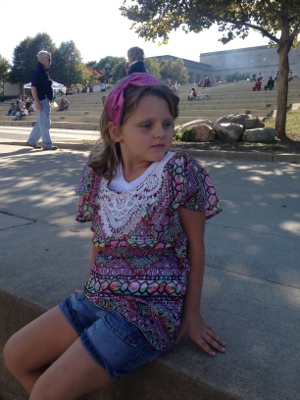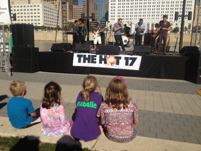 While at the game, my brother texted me about a gig he was playing at the riverfront. The kids have been wanting to see him play so I thought it would be perfect since I didn’t need to take them to a bar to see him! I told Ri to get dressed up like a rocker girl and she didn’t joke around! Blue eye shadow and all (dad was not pleased nor was I but we let it go this time!)