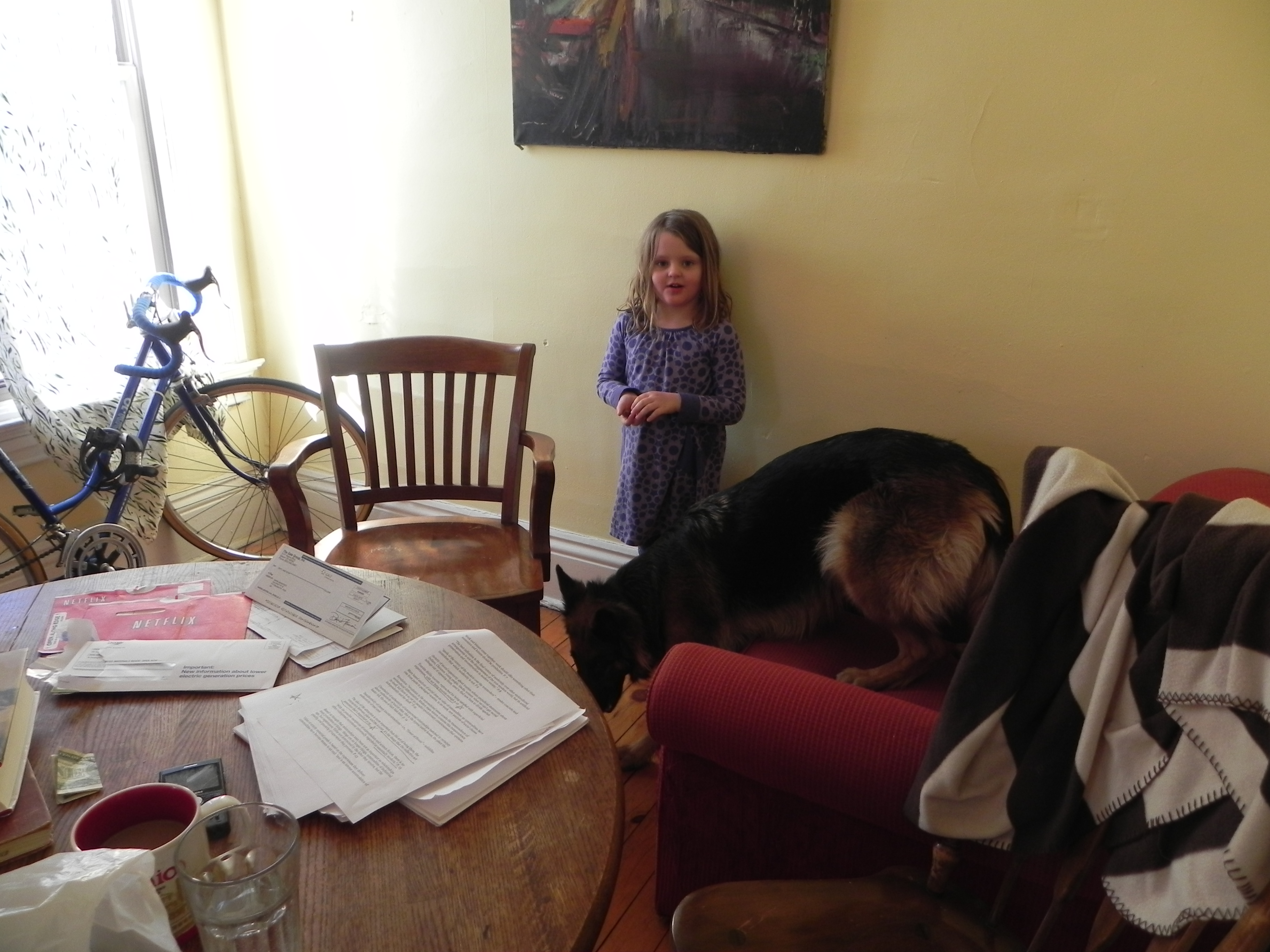16. Pulling the wooden pup around the terrace. On our second morning in Oaxaca, we bribed Elena to eat oatmeal and then we would go on the terrace. She has a little wooden puppy that she likes to pull around with her. We took the puppy out with us for Elena to pull. But the joke was on us. She directed Maria to pull the pup the entire time. Maria gladly obliged, nonetheless, and we spent 20 minutes watching Maria pull the wooden puppy while Elena followed her pointing to where Ri should go. It was golden.