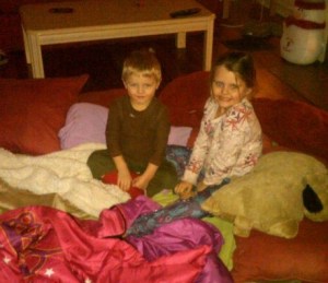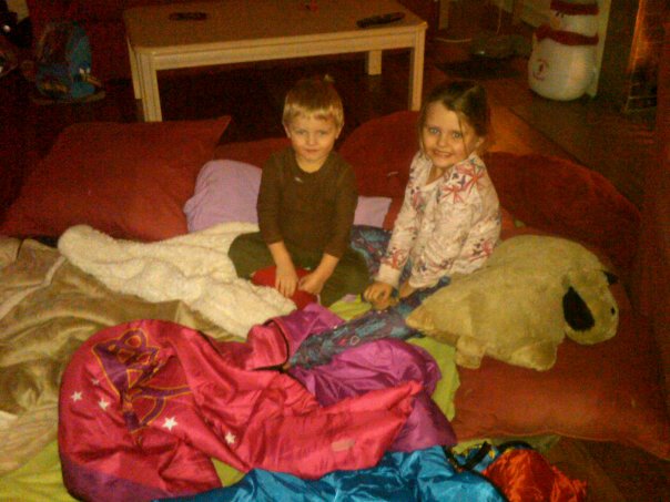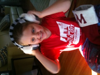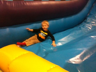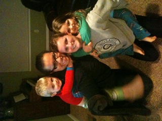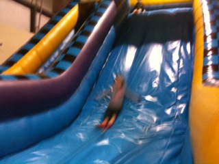 Dinner reminded me of my Grandma Heile’s house. We had pulled beef, cole slaw, baked beans, green beans and cookies. People also brought chips and brownies and cupcakes. This is a very bad scenario for Maria and me. We both like to graze at these “buffet” like events. And graze Maria did. She ate two meatball sandwiches, beef, baked beans, chips, cookies and cupcakes. By 7:30 she was complaining of a hurt tummy and asking to lay down. She was knocked out at 8 pm. I took the remaining crew out to the stage to dance to lots of 80’s music. They were hysterical dancing. Mario acted like he had a microphone in his hand and he sang made-up words to the songs. Alana danced like she was on Dancing with the Stars, and Giovanni went from one side of the stage to the next hopping and bouncing. They loved looking at all of the costumes. There was one girl who had claws for hands with really long fingernails. THey intrigued Mario who kept swearing to me that they were her real hands. I should have known when he had me look at her for the tenth time that he would have nightmares about them that night….