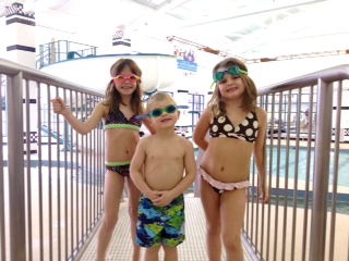 We finally called it a night at 9:30 pm and left for the hotel. Maria never quite got out of her slumber and Mario was pretty tired when we got into bed (Alana was going to sleep with us but decided last-minute she couldn’t bear to be without Grandma). We watched one show and fell asleep for about an hour before Maria woke up with a belly ache and Mario woke up with the claws in his head. It was a restless night. But the morning brought a buffet breakfast downstairs in the hotel and we got our energy back in us for another round of swimming (Maria and I paced ourselves with a half of a waffle, cereal, and hash browns).