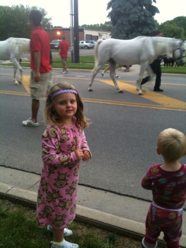 We celebrated Easter today out at the farm. The forecast called for rain all weekend with strong thunderstorms at times. When we woke up this morning, the sky was grey and dreary but had promise to it. Patches of yellow and blue broke through in the sky, and I had a feeling during my morning run that we would be spared. I was right. The Grandview Easter Egg Hunt began at 10 am with soggy grass underfoot but no rain showers. Maria’s nightmare came true when she heard that 5-7 year olds were grouped together (“I will never get as many eggs as 7 years olds). However, she perked back up when she met up with her friend Anna and her grandma. I stood with Mario in the 2-4 year old group coaching him about how to engage in the hunt (“pick up the eggs first – not the bags of oreos and cookies”). He put his game face on after my speech, and anxiously awaited for the announcer to yell “GO!” What comes over me and other parents at these easter egg hunts? We are so competitive following our kids around the area pointing frantically at eggs that we see. When the kid is looking in the opposite direction, we yell “Mario, look! Mario! Mario, over here! Mario!!!” Mario ended up with more eggs than Maria, which led to Maria frowning and complaining that she did not get “any” eggs even though she had three in her basket. Her friend gave her two of her eggs, which led to 180 degree change in Maria who smiled from ear to ear. the kids sat down to open their eggs, and Mario promptly gave me the first chocolate candy piece he opened. What a doll. I had told him how much I loved easter chocolate and he had told me that he would share his with me. However, I was not going to believe it until I saw it. And there it was. He does love his mama! Maria, on the other hand, gave me a stern look when I grabbed a chocolate chip cookie from her basket. “Mom, this is my food.” She is so generous when it comes to other things but not her food!