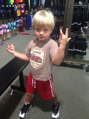 Next, we hit Zach’s house. They were preparing for Grace’s birthday party so we helped fill the piñata and broke out SpongeBob tattoos (we know how to party). Zach let M&M ride his go-cart which thrilled Mario. He also played b-ball with him. Mario is gonna love making boy friends at Stevenson. Meanwhile, Ri threw on Zach’s football pads and completely played the role of linebacker.