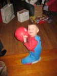 Jon’s family came over at 2 pm for Christmas dinner. The kids played fairly well together although Mario still clung to me or Patty the entire time. They left around 8 pm that night and we were all exhausted except Mario who always gets his second wind around that time. He wanted to wrestle and jump and punch and kick. The boy is like the energizer bunny. We played for a while in Maria’s room – Mario put on his imaginary diving suit and jumped in the ocean off of Maria’s bed and Maria helped him look for fish to catch. Maria and I fried the fish and ate them. After 15 minutes of that game, Ri and I read some Fancy Nancy books. and Mario chose Dr. Seuss. Mario got out of bed, as always, within 10 minutes of putting him down. We fed him cheese and crackers and he begged me to go upstairs with him. I hesitated because I wanted to veg out with my computer and cookies, but I gave in and was fast asleep by 10 pm. Ugh, so much for some down time and again, not the night I had thought it would be.