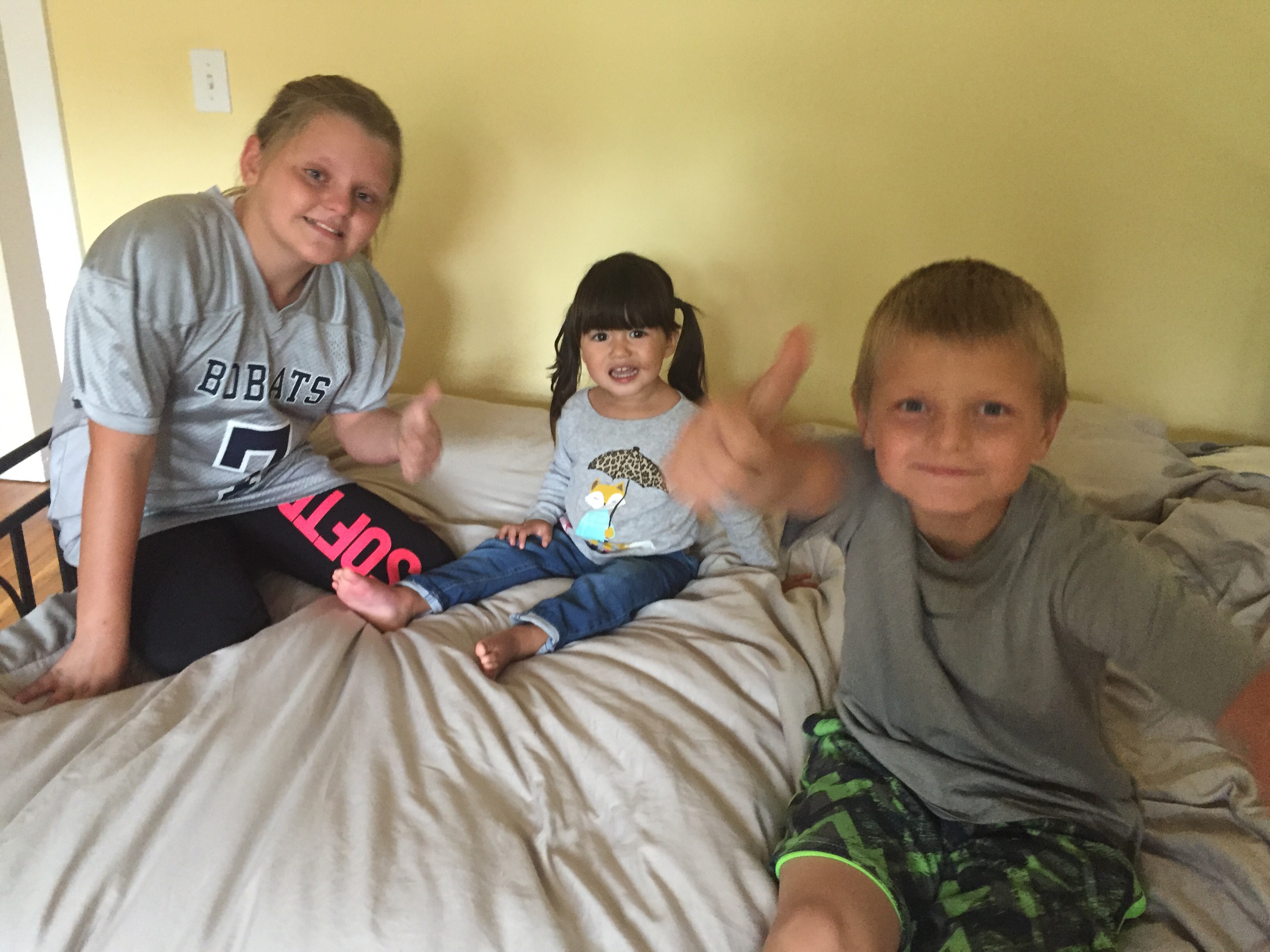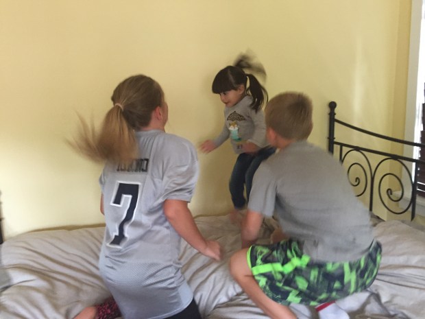 Maria and I got into a routine every morning. We would hear Elena wake up, usually at 7 am, and ask Sarah “where is Aunt Mary? Where is Meemaw?” She would open the door to the guest room and climb into bed with us. No snuggling time though; instead, it was straight to jumping. Ri and I pulled ourselves up out of the covers and watched her jump and land on her butt. She’d yell “I landed on my butt!”