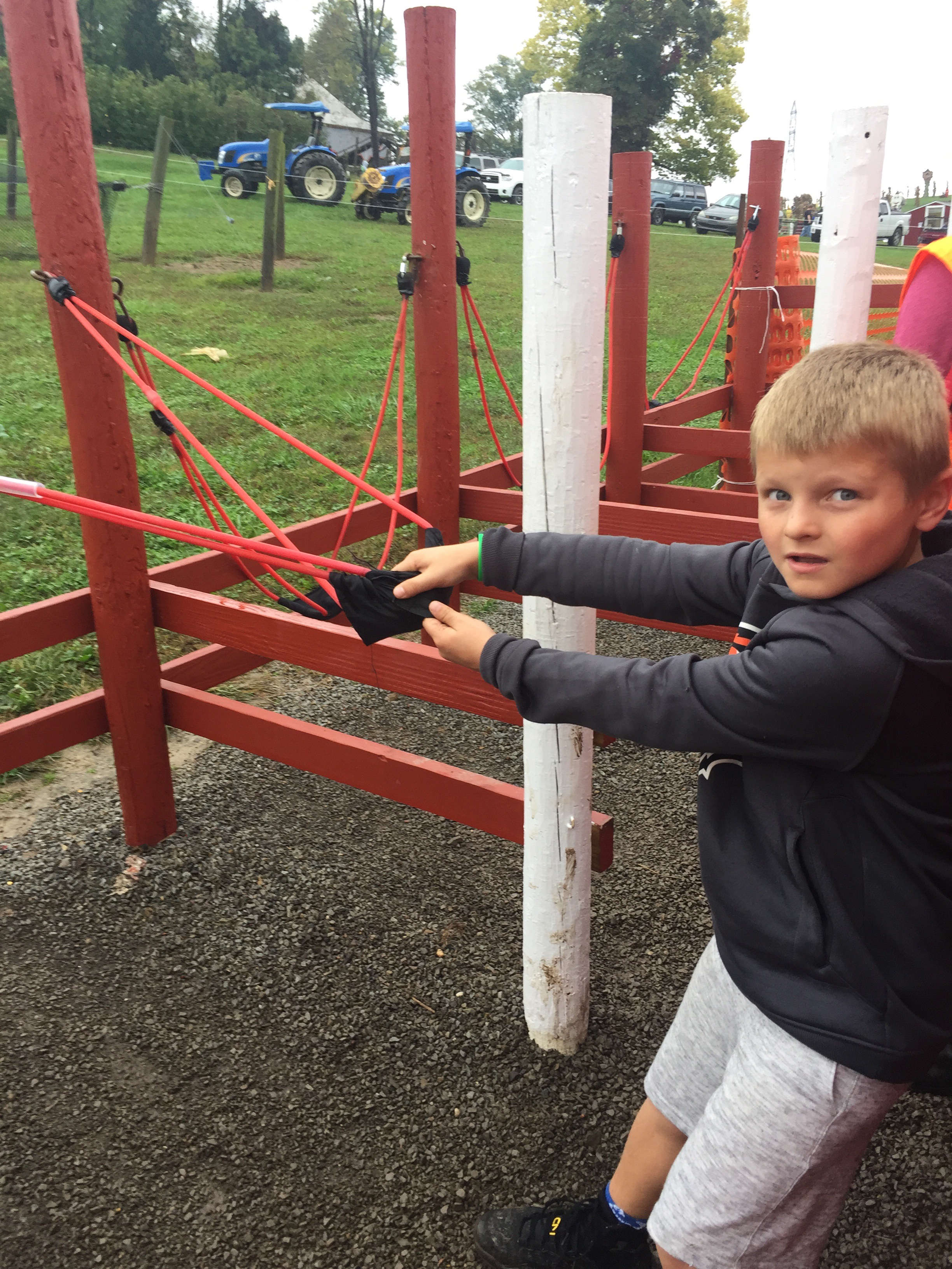 They had a slingshot area where you tried to shoot a tennis ball at a target. Mario got quite a few at the first target; Jorge and I cracked up at our attempts at the farther target.