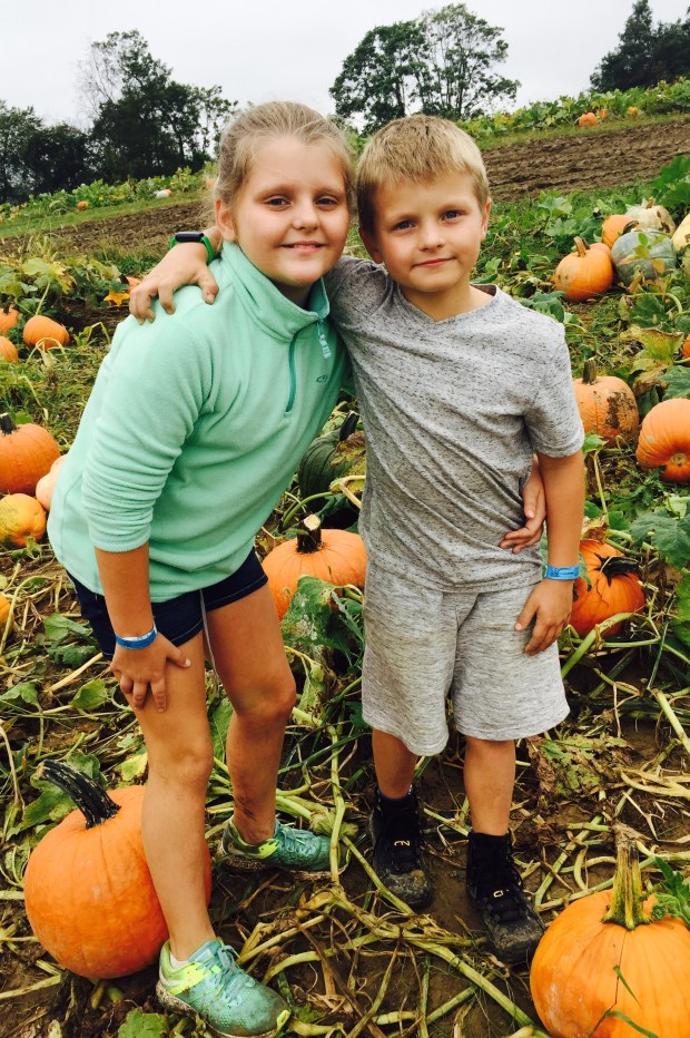 The rest of the gang was ready to call it a day four hours after we had arrived but the kids and I decided we needed one more round of pig watching and haunted house viewing, and we still needed to go apple picking. We kissed our gang  goodbye and headed up to see our pig. Then we went to the haunted house, and ended the day picking golden delicious and gala apples from the orchard. I figured we’d head home from the pumpkin patch but the kids wanted to see Elena one more time.