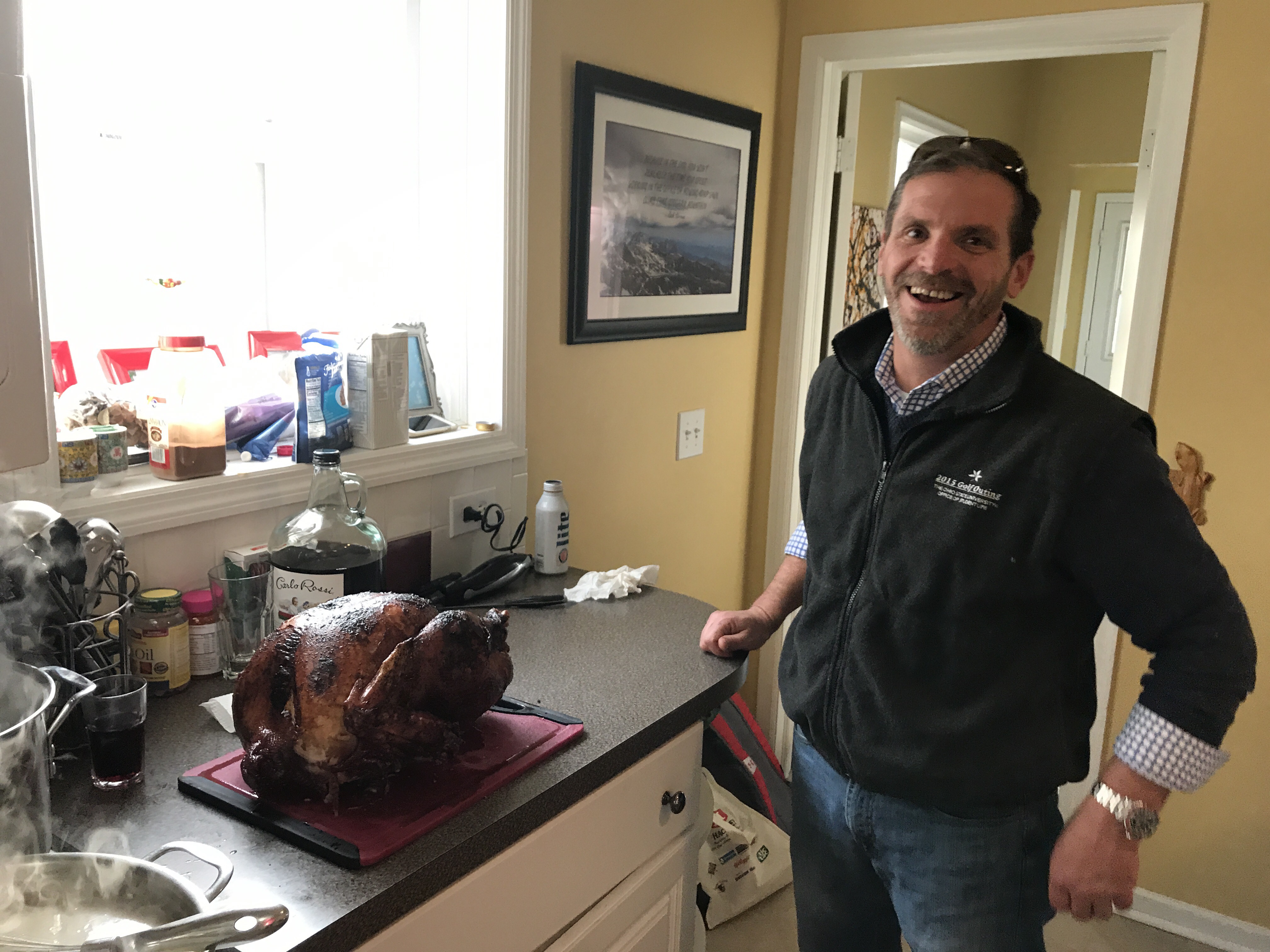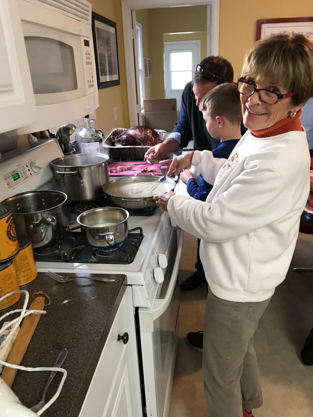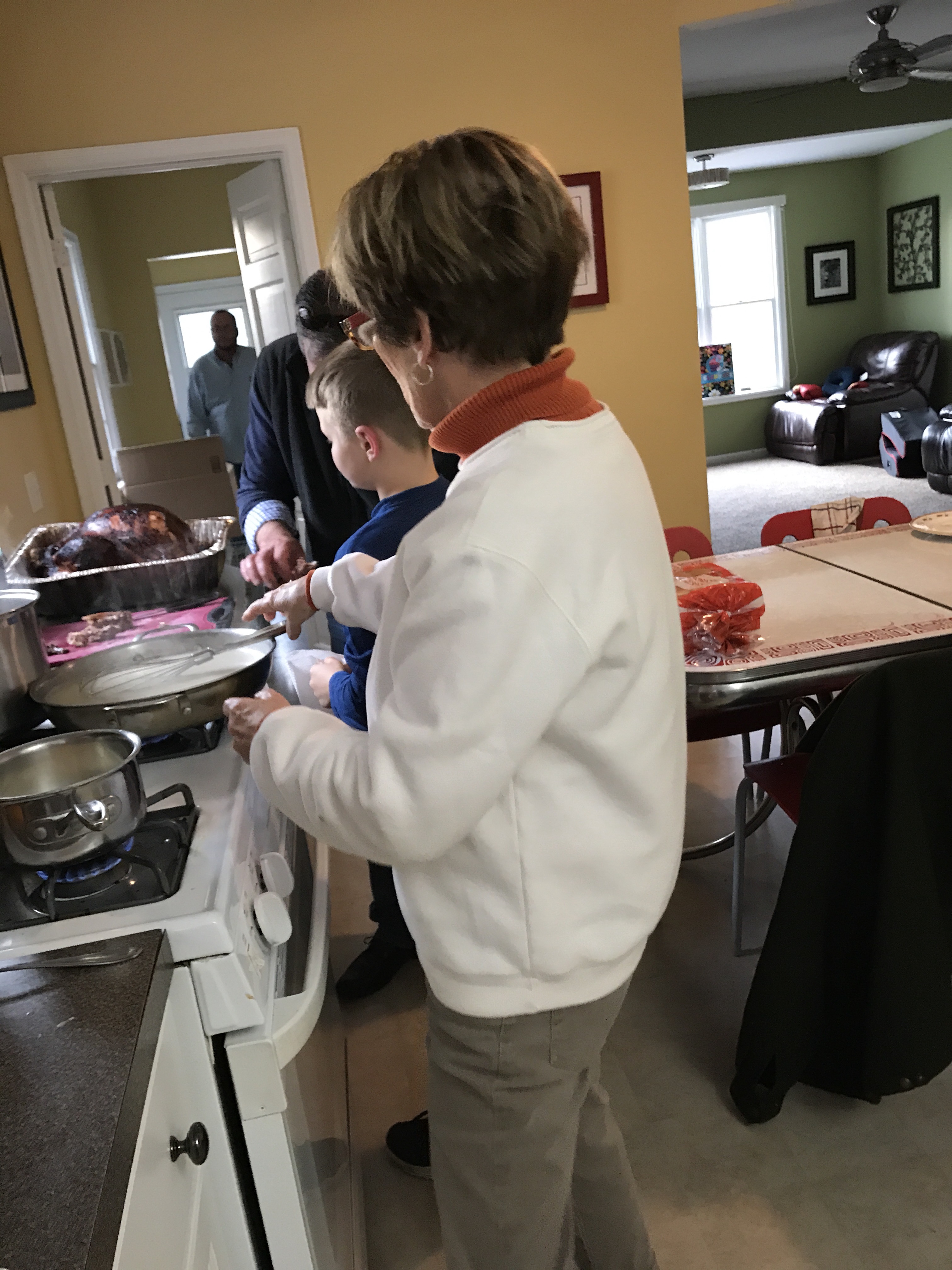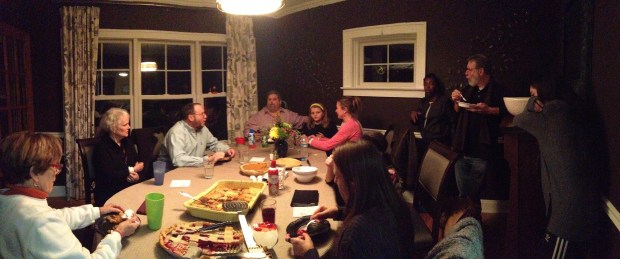 The traditional Thanksgiving meal was served, and it was carb heaven. Patty’s corn casserole, potatoes, Patrick’s stuffing and rolls. We were able to get the adults around the dining room table, too, which was nice. The kids acted goofy and rambunctious in the other room.