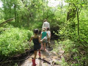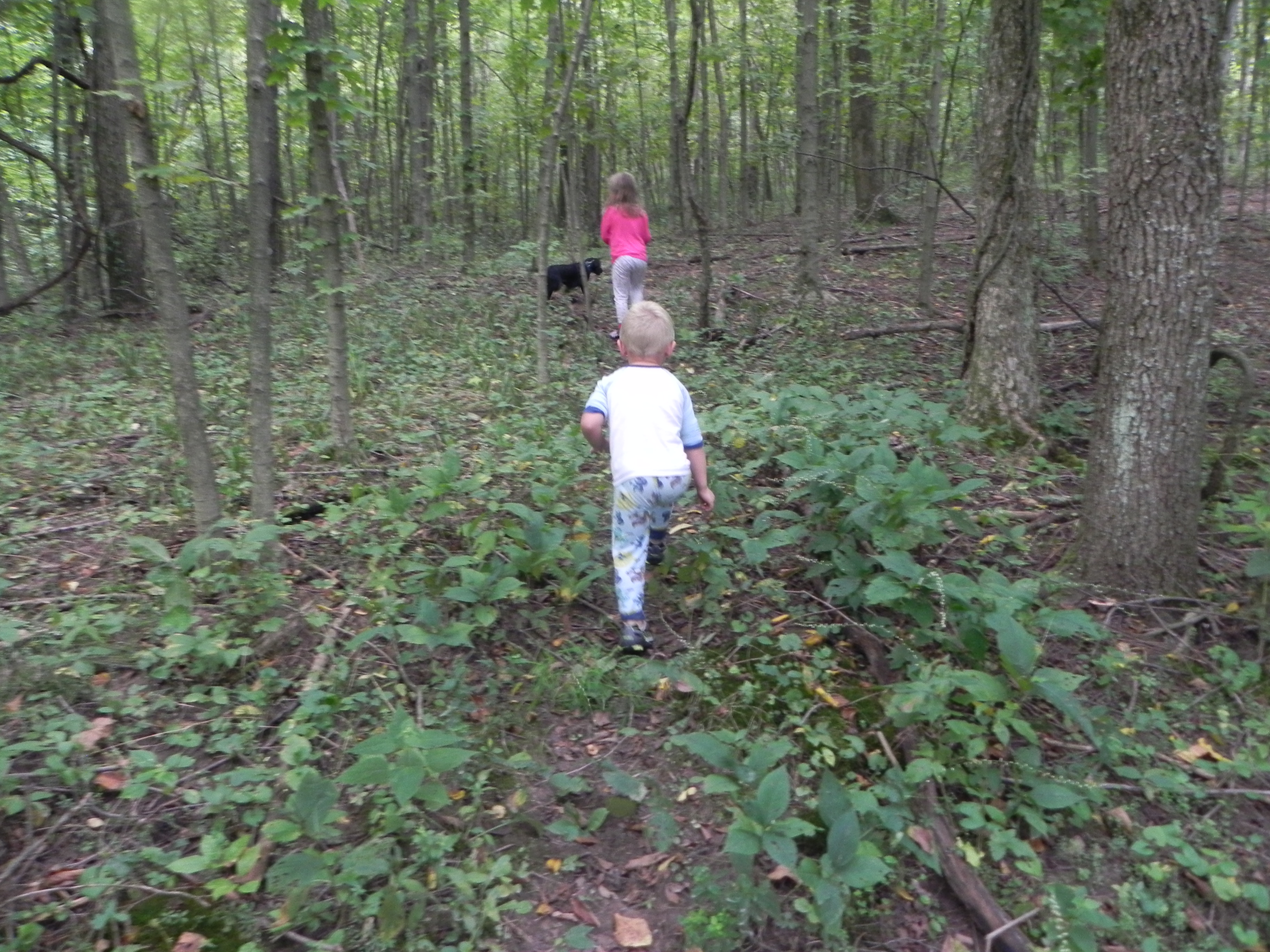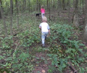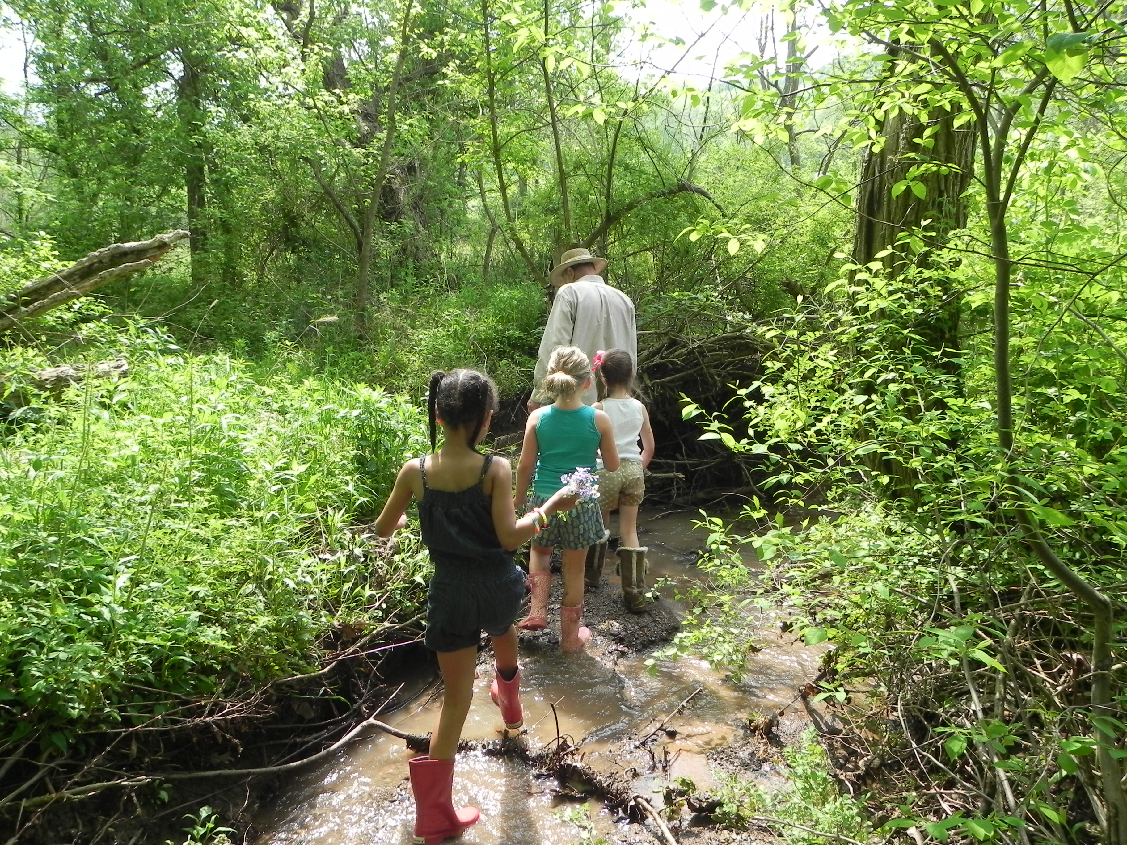 The morning brought dazed, punch-drink looks from both kids and adults. The kids played with the chickens and dogs some more and devoured Peepaw’s blueberry and walnut pancakes (easy to do). We took a creek walk again but this time from the road all the way back to the pasture. I told my dad that he needed to host a Warrior Race out at the farm between the mud and water and branches and thorns we needed to traverse as we walked the creek. Forget barbed wire fences and hoses for water – we have it au natural at Red Hawk. The girls were unstoppable and in heaven.