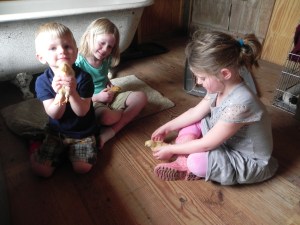 The chickens also had it in for the weekend. The girls moved to them next. They “herded” them like sheep and surprisingly did a good job at it. They also discovered six eggs in the henhouse which was quite exciting for them (and tasted delicious the next morning).