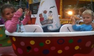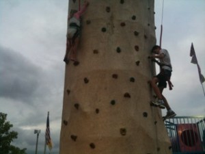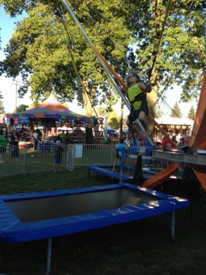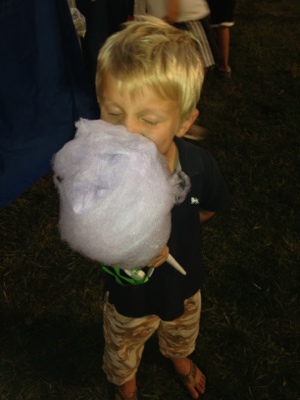 And what’s the first thing he did? Win a goldfish. Petco has got to love the Ox Roast because every kid wins a fish and therefore needs a tank and food and accessories. Mario showed his fish off and then moved on to the rides. He found Quinn and rode a few with him.