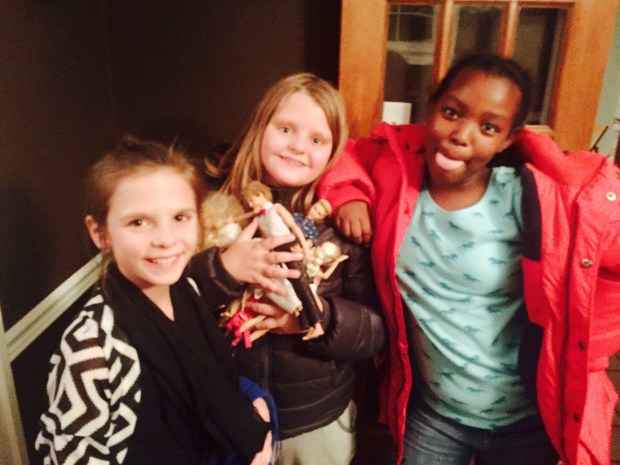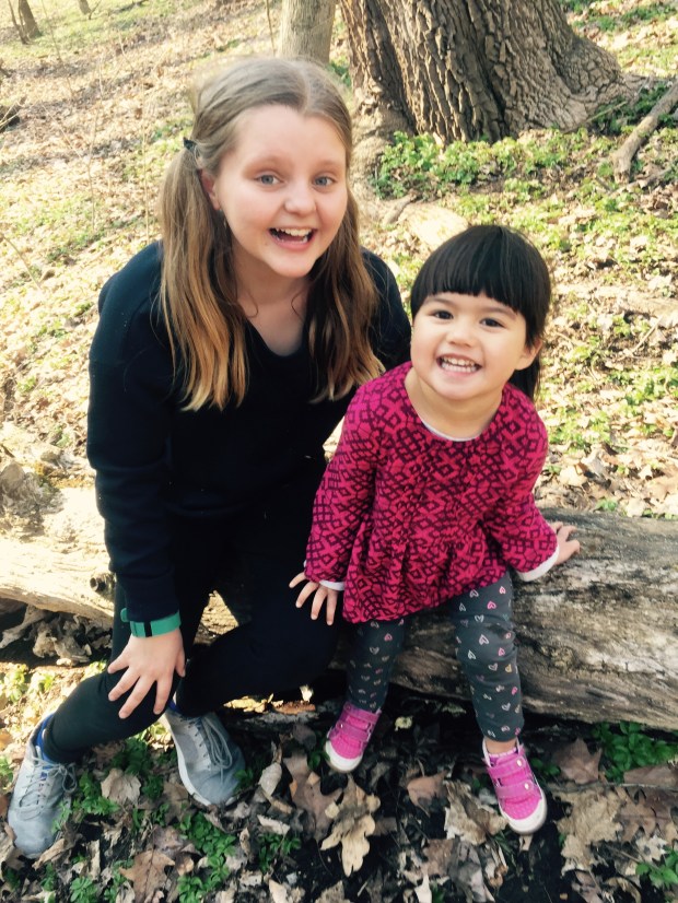 As soon as we arrived, Maria jumped out of the car while I was still parking it. She ran up to the house and knocked on the door. Aunt Sarah answered with Elena by her side. Elena hugged Maria and immediately took her up to her room to play. I was quickly beckoned by the both of them to play, also. We started on a barnyard puzzle and within three minutes moved to the art table, and within four minutes moved to Elena’s bed to play airplane. She had to get all of her animals in the bed with us, including a live animal, Sarah’s dog, Little Dude. We acted like we were flying in the sky. She has such an imagination. At one point, she looked at Maria and me, and pointed her finger out the window yelling “there’s a woodpecker!” And this is how we spent many an hour over the next four days in Pittsburgh.