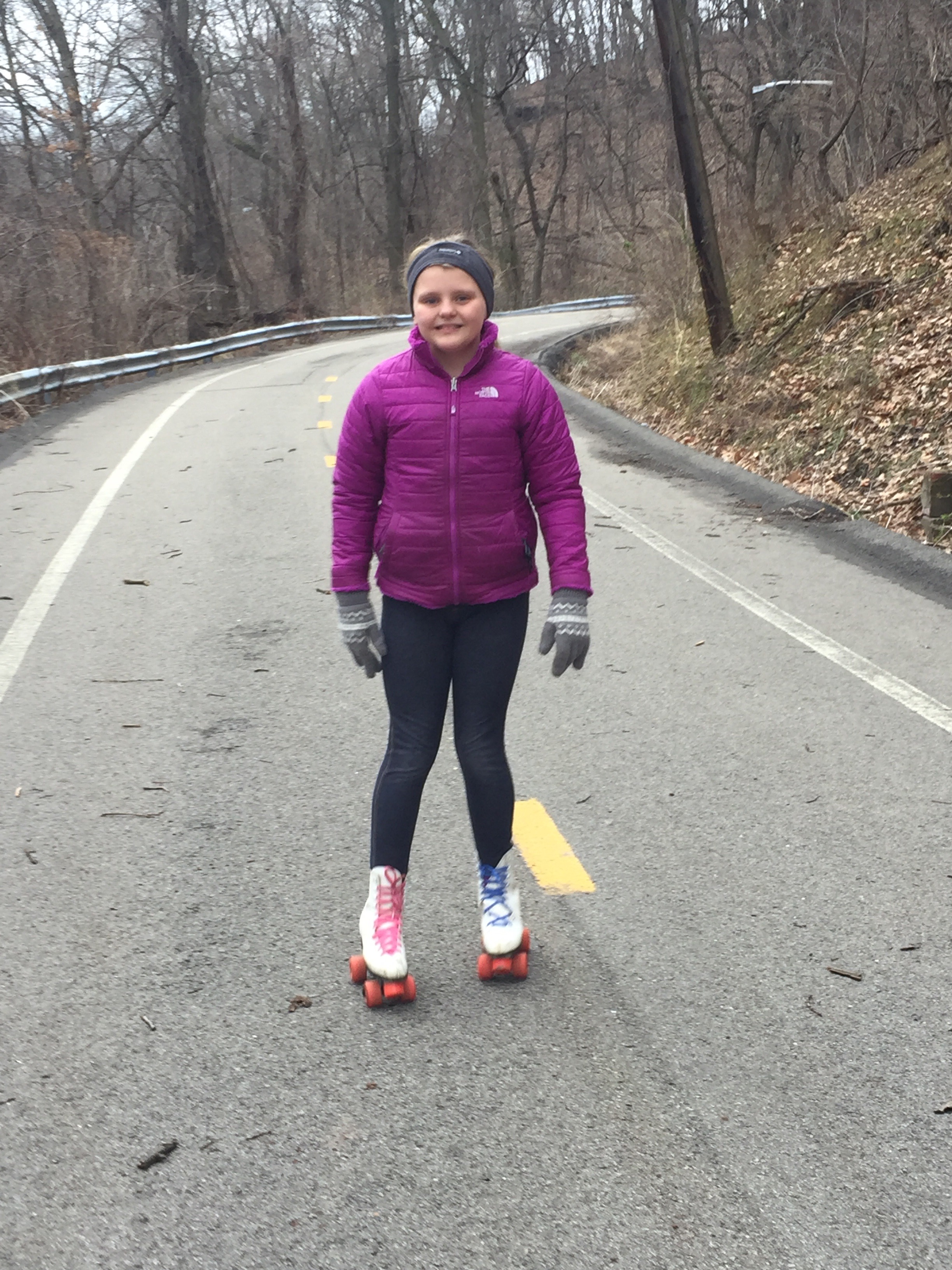 We headed home to get in some roller skating and bike riding down the hill n at Sarah’s house. Maria loved the hill. She about gave me a coronary arrest her first time on it because she let go of my arm and went flying down the hill by herself. She was either hitting the guard rail and flipping down a hill of brush to the highway or she was veering right to even out on a flat surface. I ran after her as hard as I could when she let go – about ripped both hamstrings – but she was way too fast. I just stood and prayed to whoever or whatever would listen. She veered right and I fell to the ground and nearly cried. She rolled back up towards me in pure exhilaration.