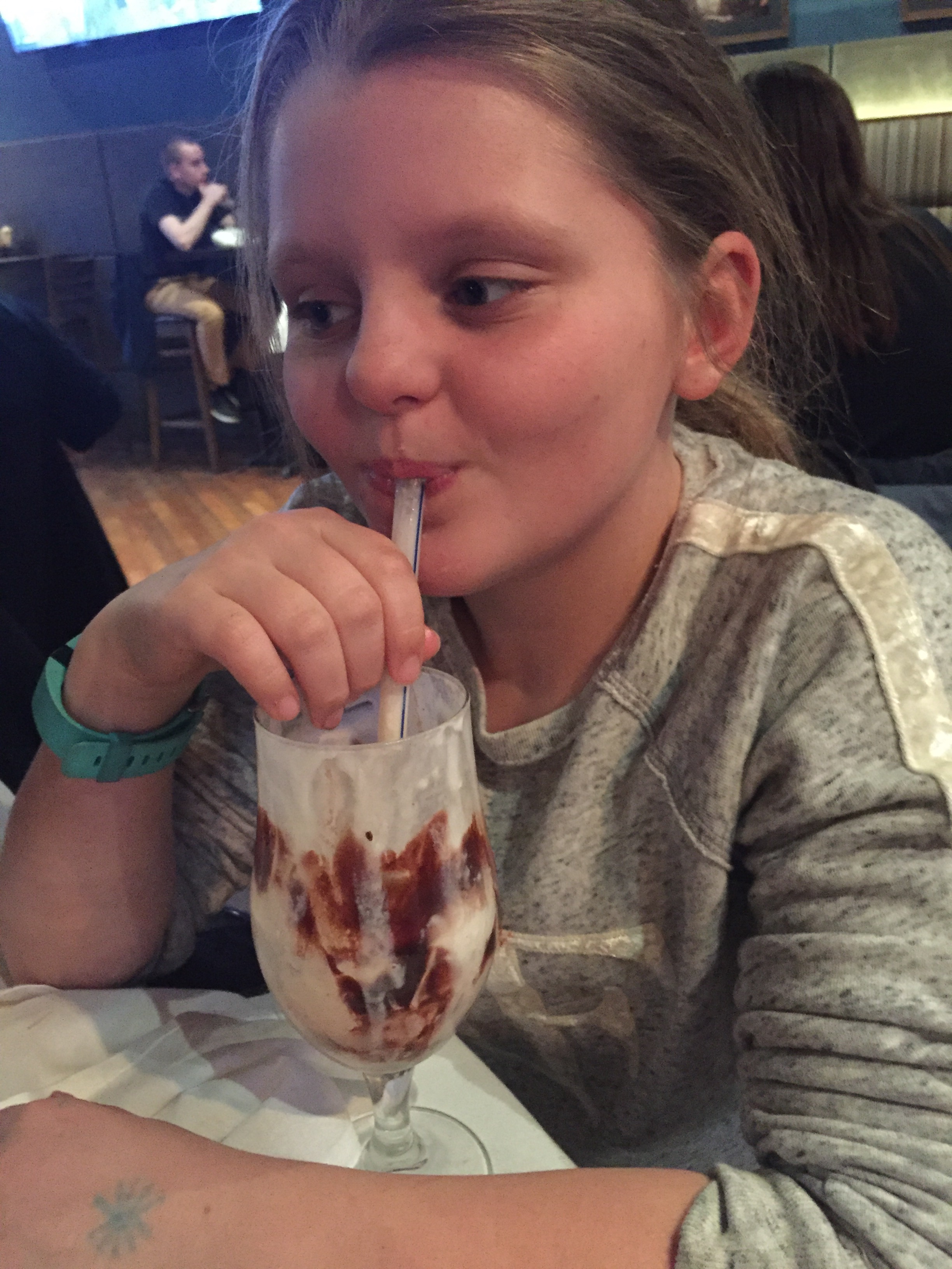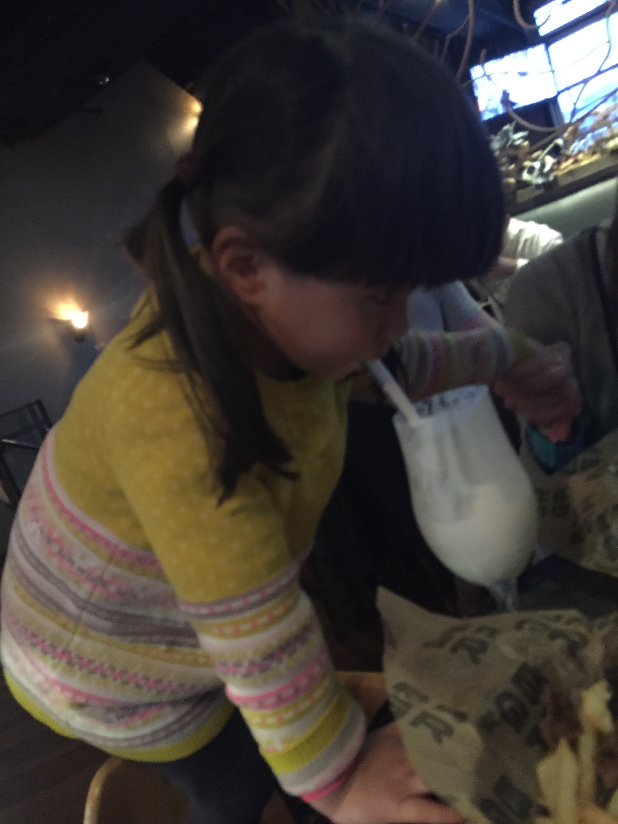 Sarah and Jorge took us to a crazy good hamburger joint Sunday night. The joint also had amazing milkshakes. Maria could not wait to order hers after our meal, and Sarah accidentally ordered one for Elena as well. That girl was in seventh heaven (as was Maria!).
