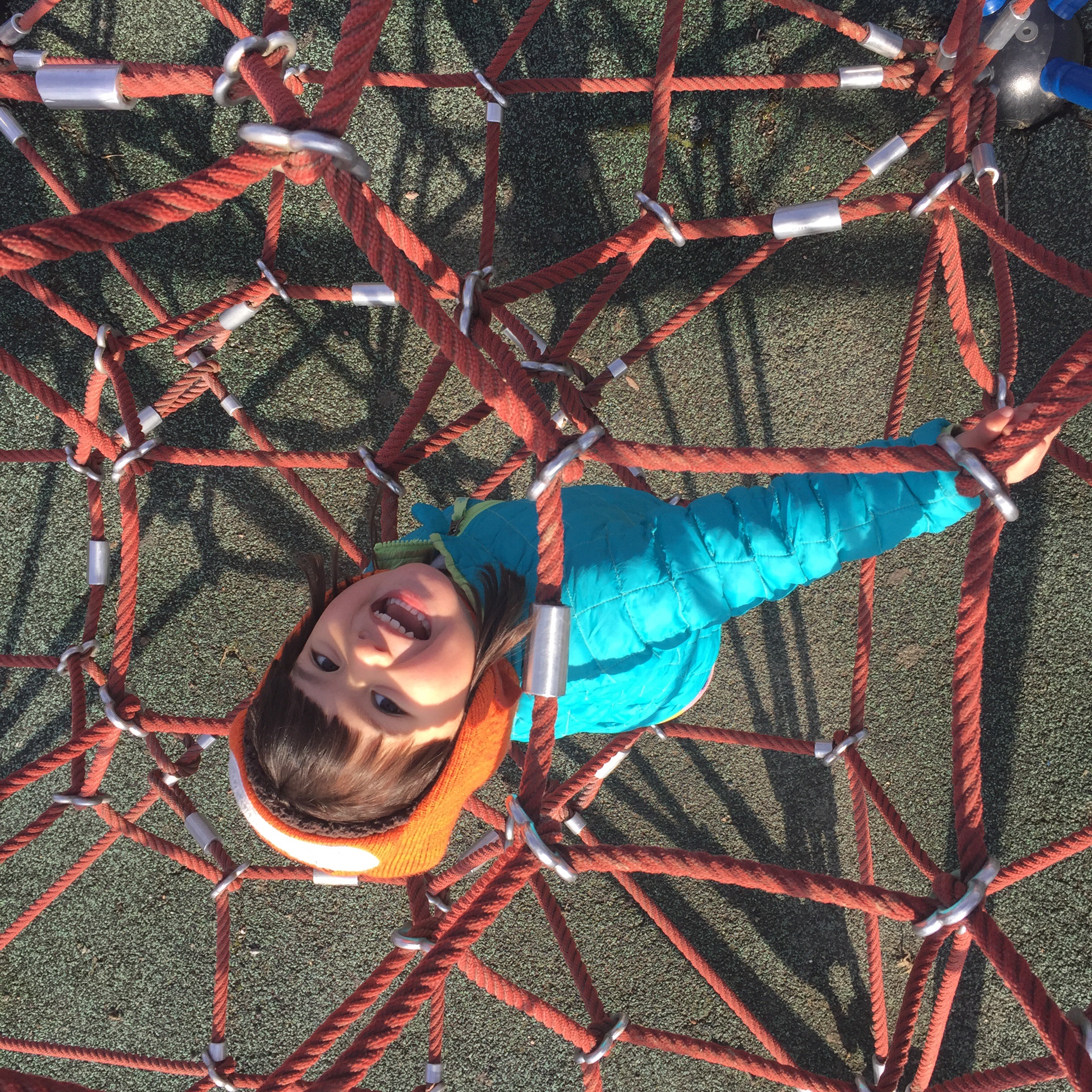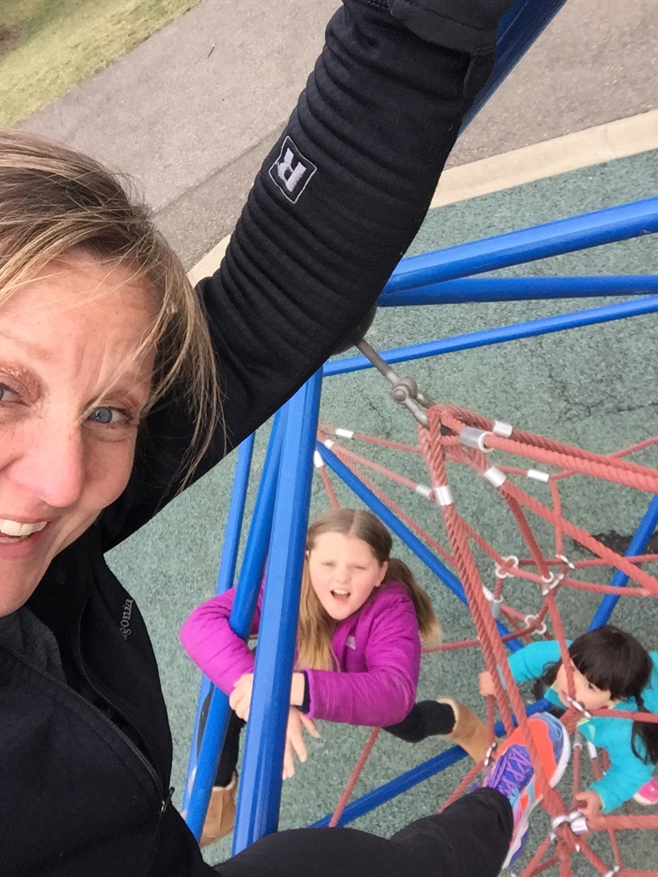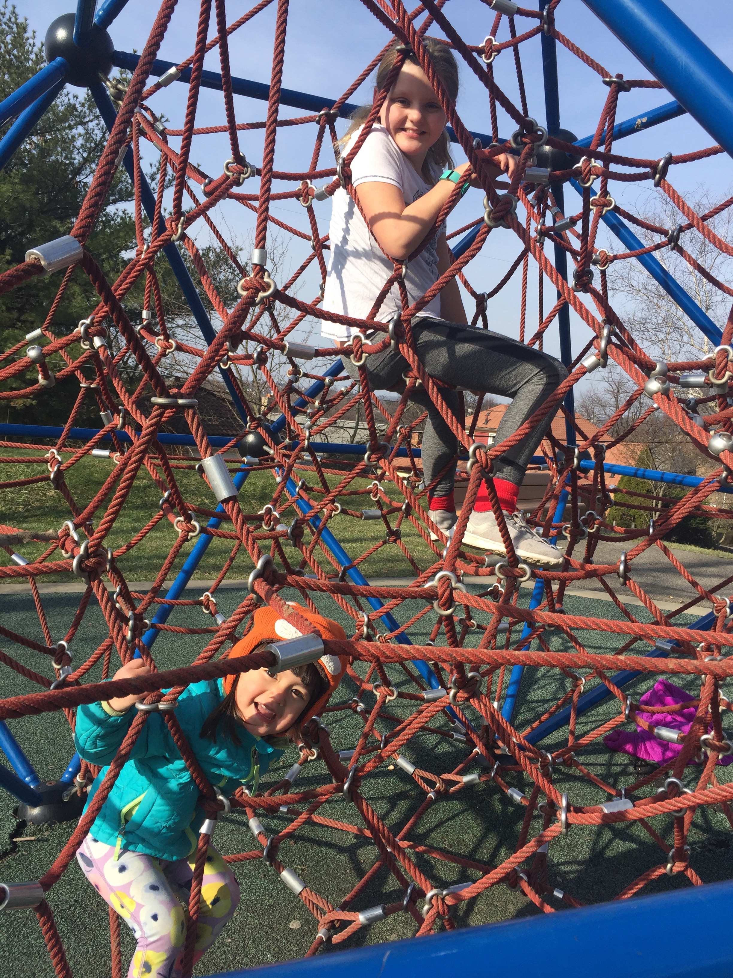 We spent nearly two hours at the park sliding and playing on the ropes. Ri and I are convinced she’s going to climb the Alps.