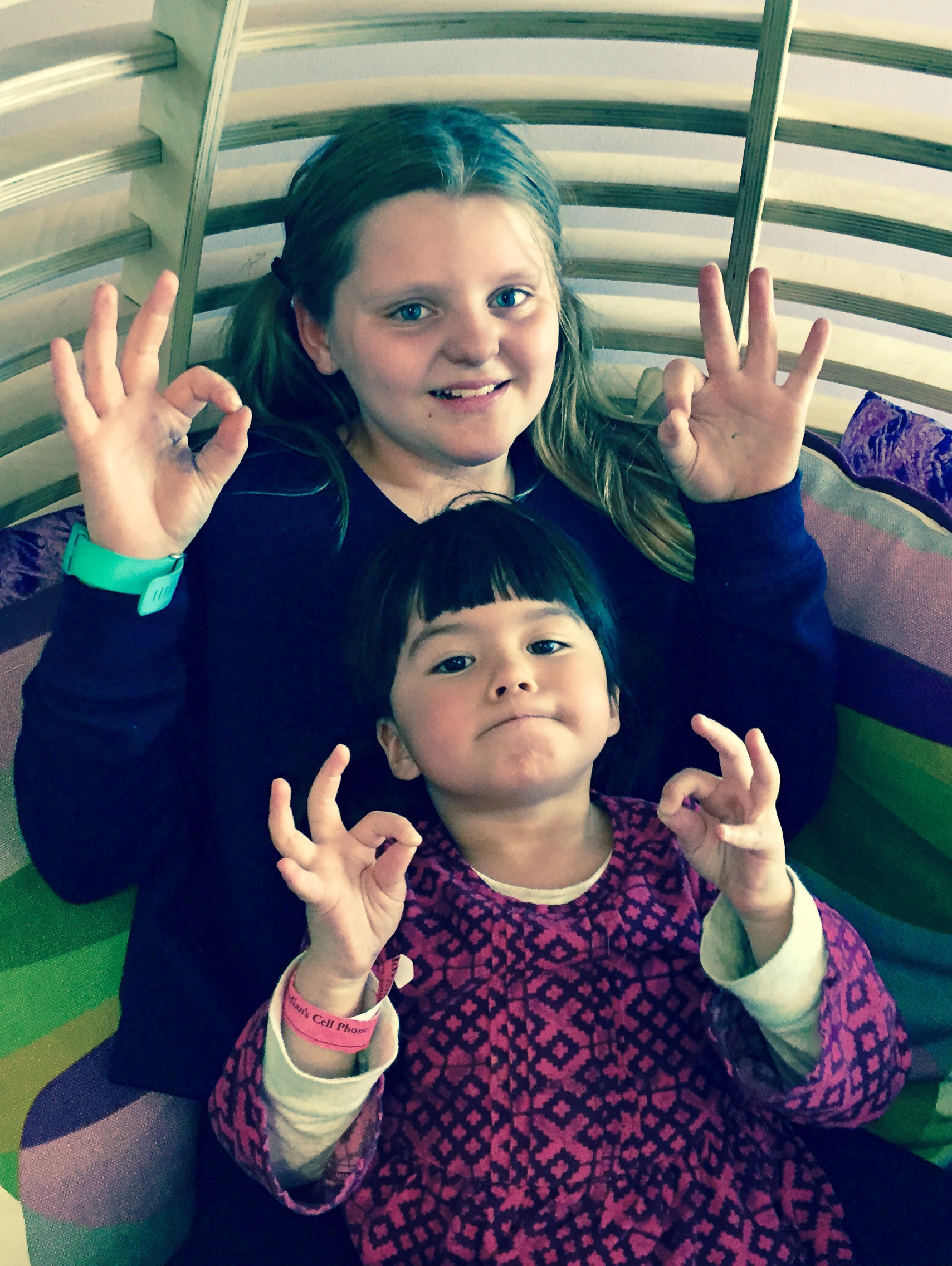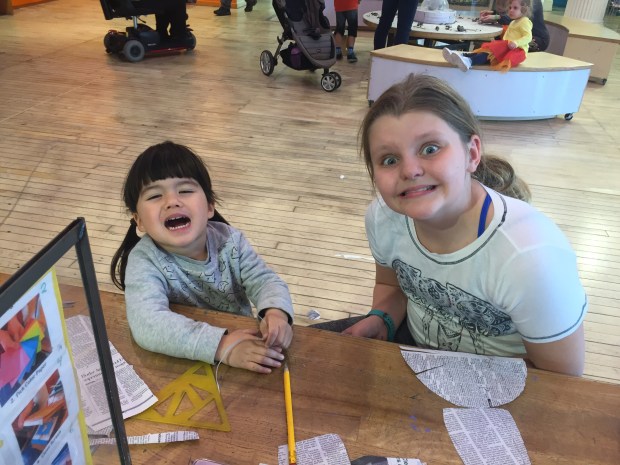 It was as if we’d never gone to the museum. They both played at all the same displays and had a blast. More newspaper bracelets, more ball throwing, more clay houses, more meditating in the egg chair.