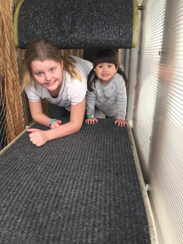 Elena’s favorite part of our Science Museum trip was the submarine. She loved moving through the “holes.” These were the tiny doors that we had to go through during our trip down the submarine. She thought it was so fun to get picked up and put through the door to Meemaw, and then to run through the submarine to the next door. She could have cared less about the dining or sleeping areas or even all the gadgets. She just wanted holes!