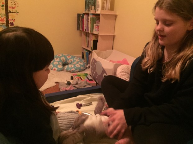 Then she would direct us to jump with her. Meemaw would hem and haw but Elena would not back down (when we were driving to Pittsburgh, Maria was comparing Elena to recent dictators and confirming those dictators were weak compared to her cousin). After jumping, we’d move on to Elena’s room to play airplane and draw. Maria gave her about 15 minutes of play time in the am before Ri would push her to head to Starbucks with us. Maria needed her morning treat and I needed my coffee. Elena was happy to join us because she got treated to a tiny vanilla bean scone, which became her staple breakfast item (in addition to the spinach wrap Sarah made sure I fed her).